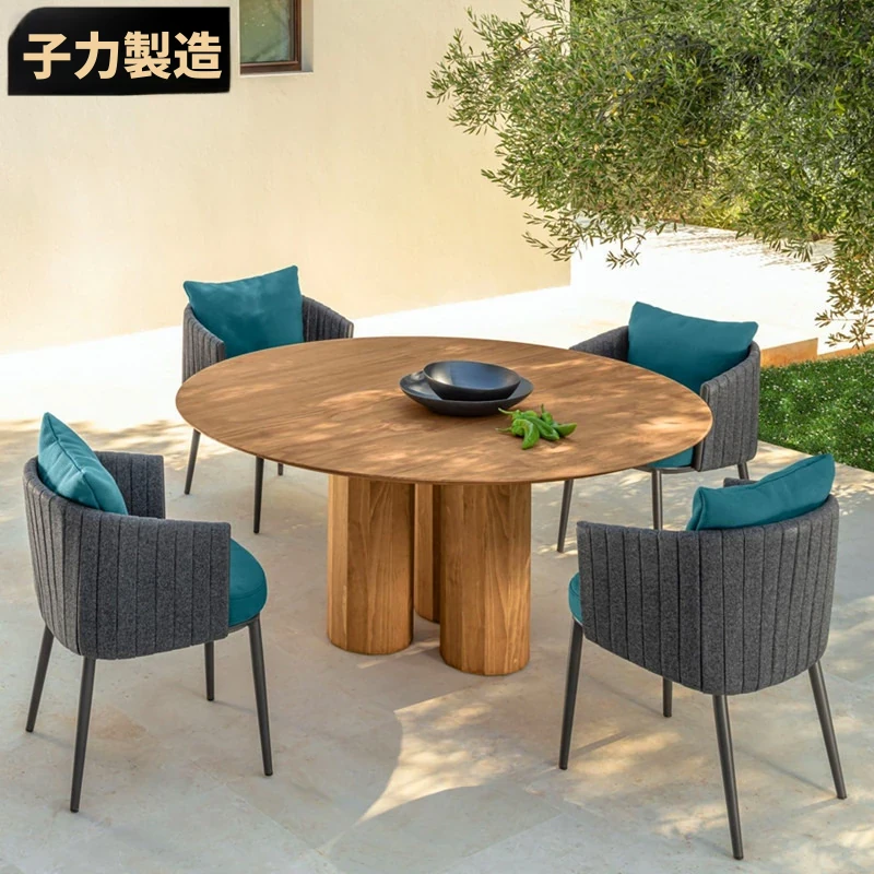 子力北欧スタイルのアウトドアダイニングテーブル&チェアセット - テラスや庭にぴったりのデザイナーチェア、リラックスできる別荘スタイルの無垢材ソファーコンビネーション家具!