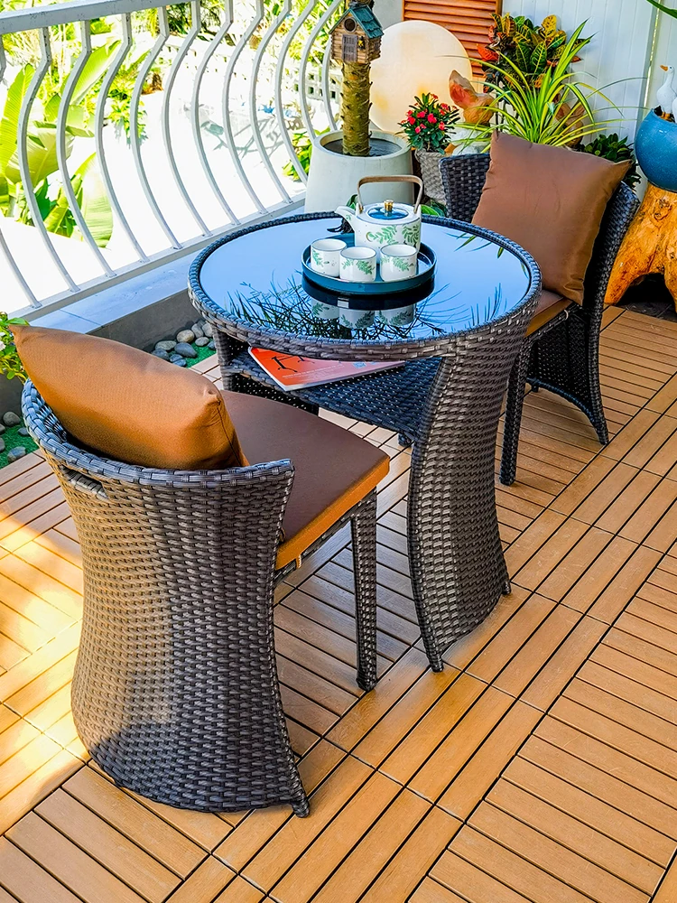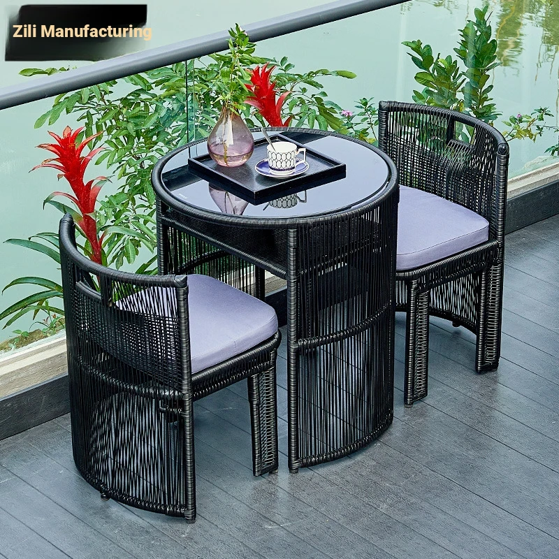 Zili Modern Minimalist Balcony Furniture Set - 3-Piece Rattan Chair and Table Combination for Home Rooftop Terrace, Stylish and Comfortable Outdoor Seating