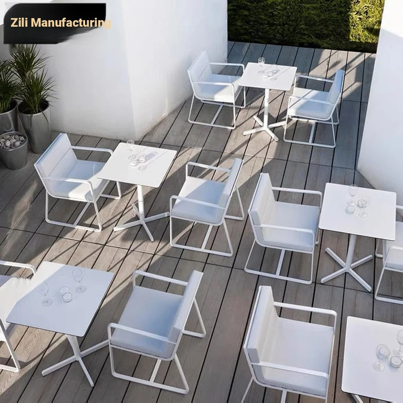 Zili Outdoor Aluminum Patio Furniture Set - Stylish White Table and Chairs for Garden, Villa, and Balcony Relaxation, Perfect for Outdoor Entertaining!