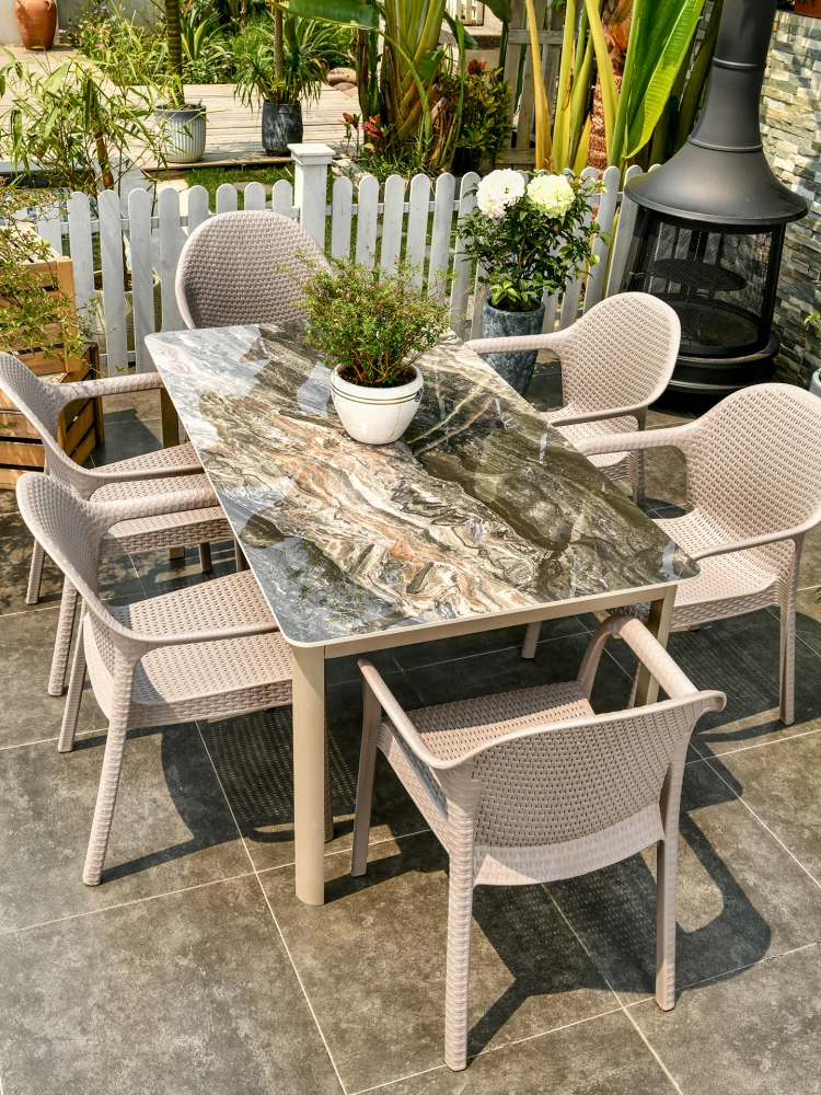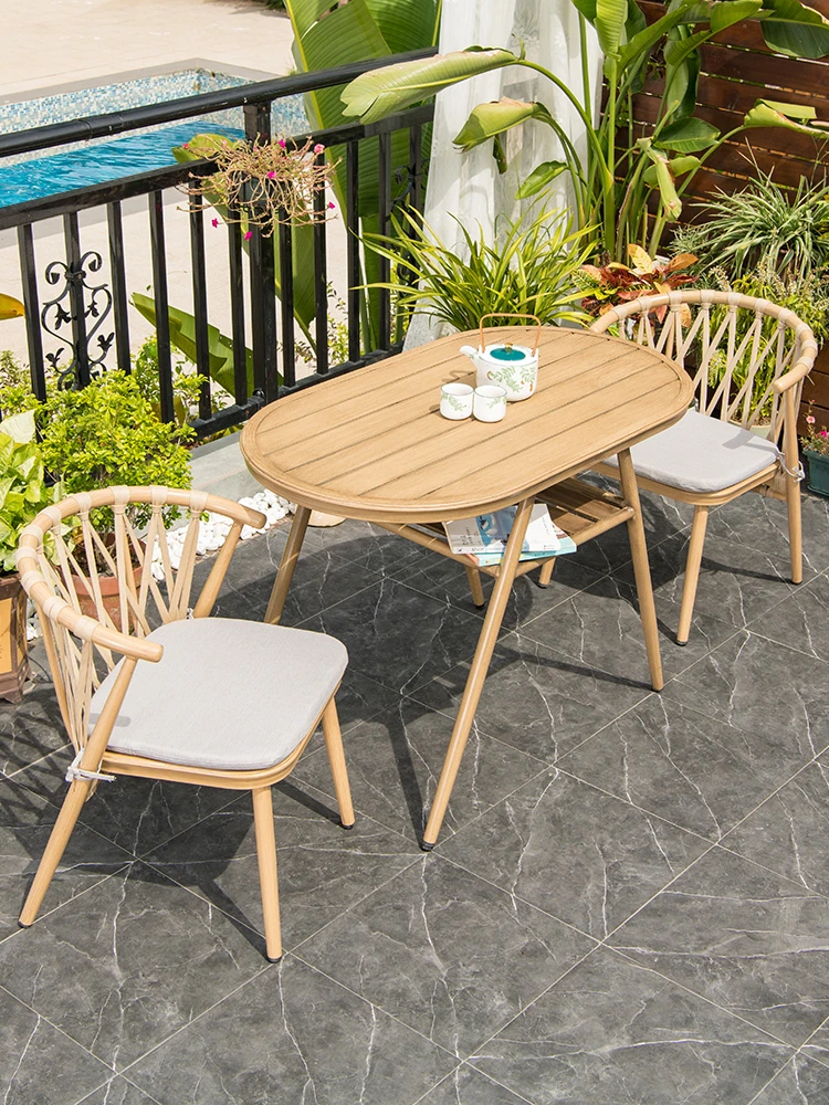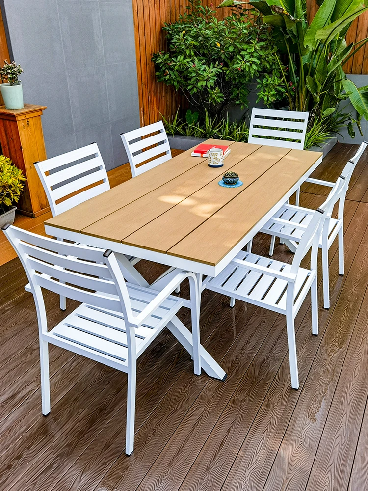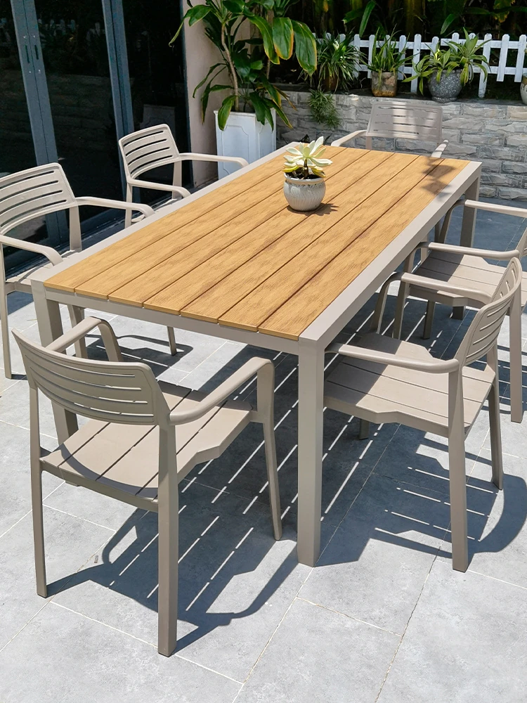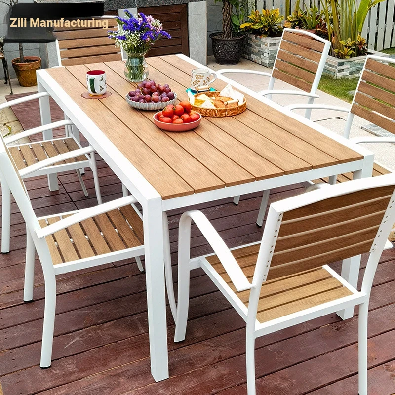 Zili Outdoor Plastic Wood Dining Set - Stylish Garden Furniture for Courtyards and Patios, Perfect for Villas and Outdoor Spaces - Nordic-Inspired Relaxation Table and Chair Set