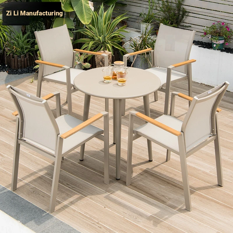 Zili Outdoor Aluminum Alloy Dining Table and Chairs - Stylish and Durable Patio Furniture for Relaxation, Featuring Stainless Steel Park Bench in Light European Design