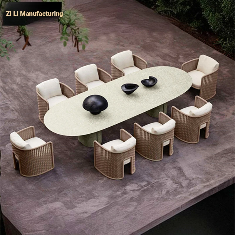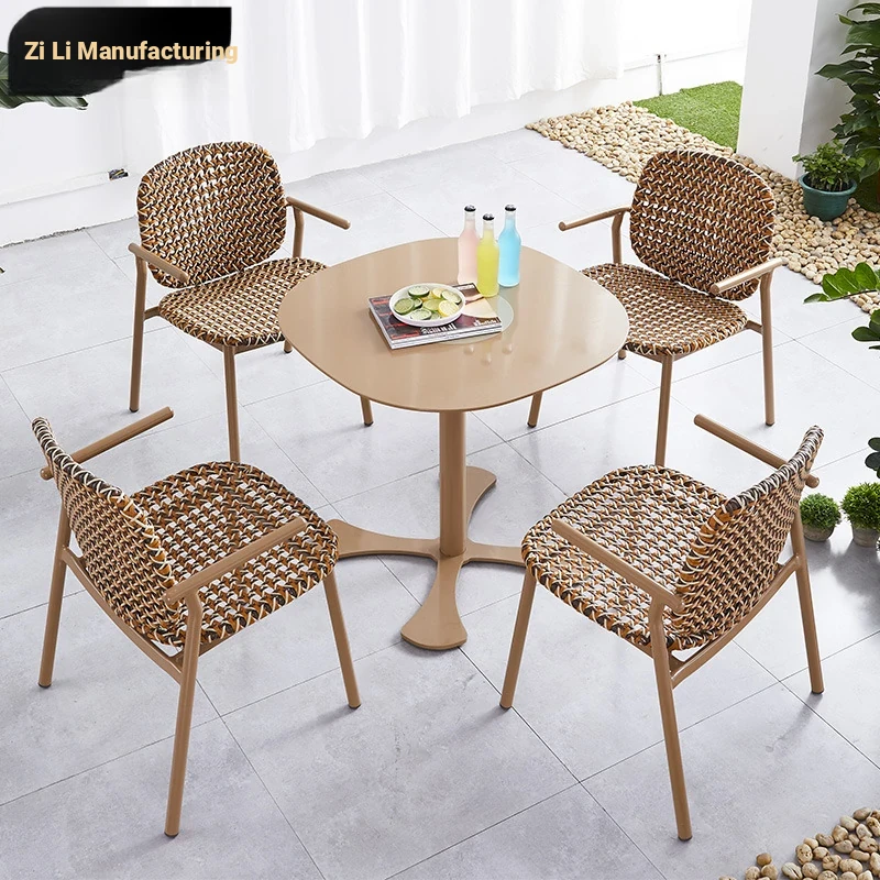 Zili Nordic Modern Minimalist Creative Rattan Dining Set – Outdoor Patio Furniture for Garden, Villa, and Courtyard Relaxation. Perfect for Stylish Leisure Moments!