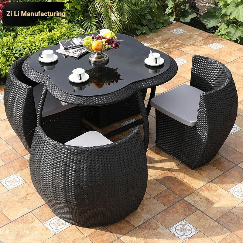 Zili Outdoor Rattan Chair and Table Set - Waterproof Garden Furniture for Courtyards, Balconies, and Villas - Perfect for Relaxing and Entertaining in Style!
