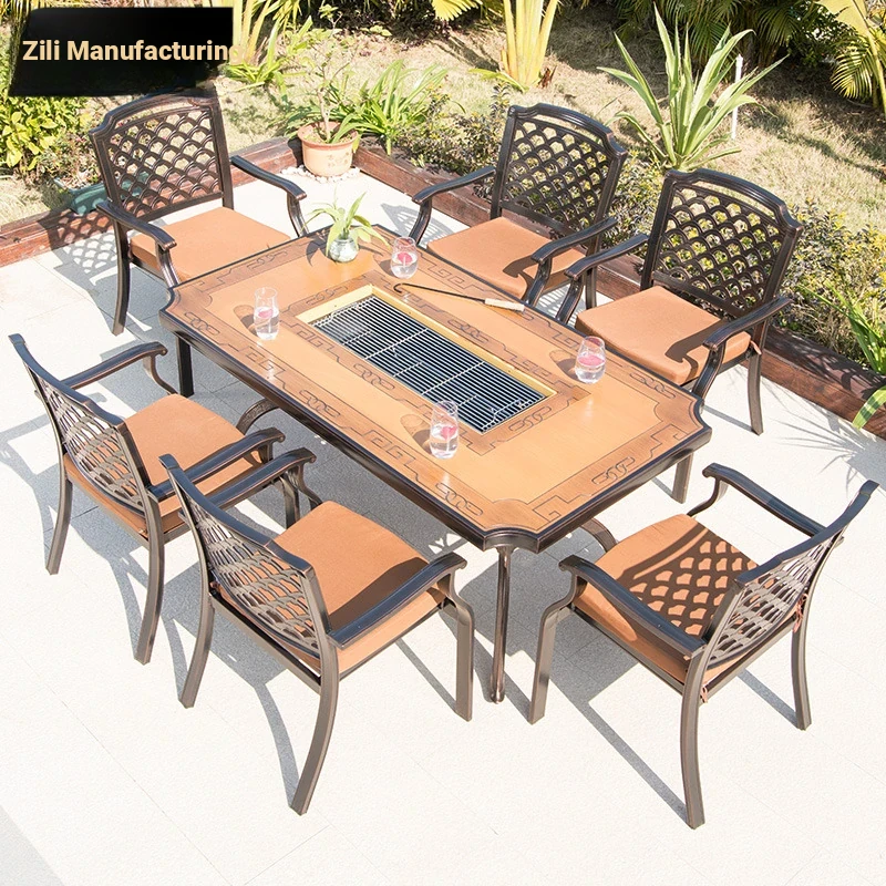 Zili Outdoor Patio Garden Aluminum BBQ Table and Chair Set – Stylish Villa-Grade Outdoor Marble Dining Furniture for Charcoal and Electric Grilling