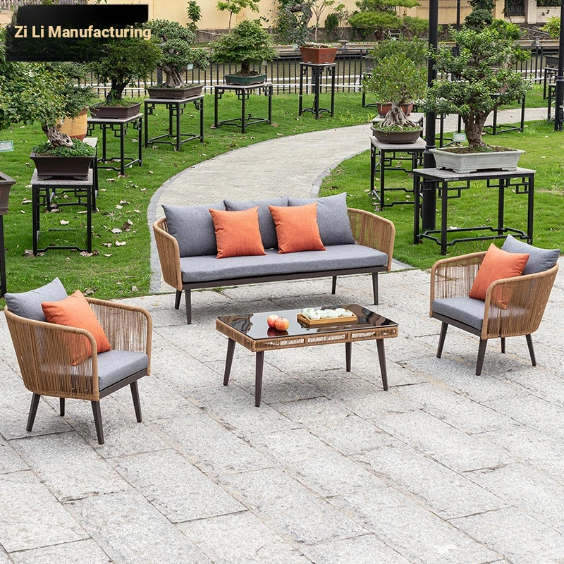 Zili Outdoor Rattan Sofa Set - Stylish 3-Person Lounge Chair for Balcony, Waterproof and Sun-Resistant, Perfect for Relaxing Outdoors