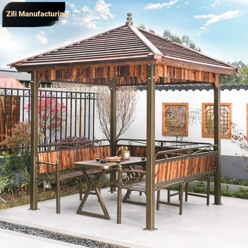 Zili Outdoor Patio Gazebo Canopy Tent - Easy Assembly Carbonized Wood for Leisure Gardens, Farms, and Villas - Perfect for Relaxation and Shade in Your Outdoor Space!