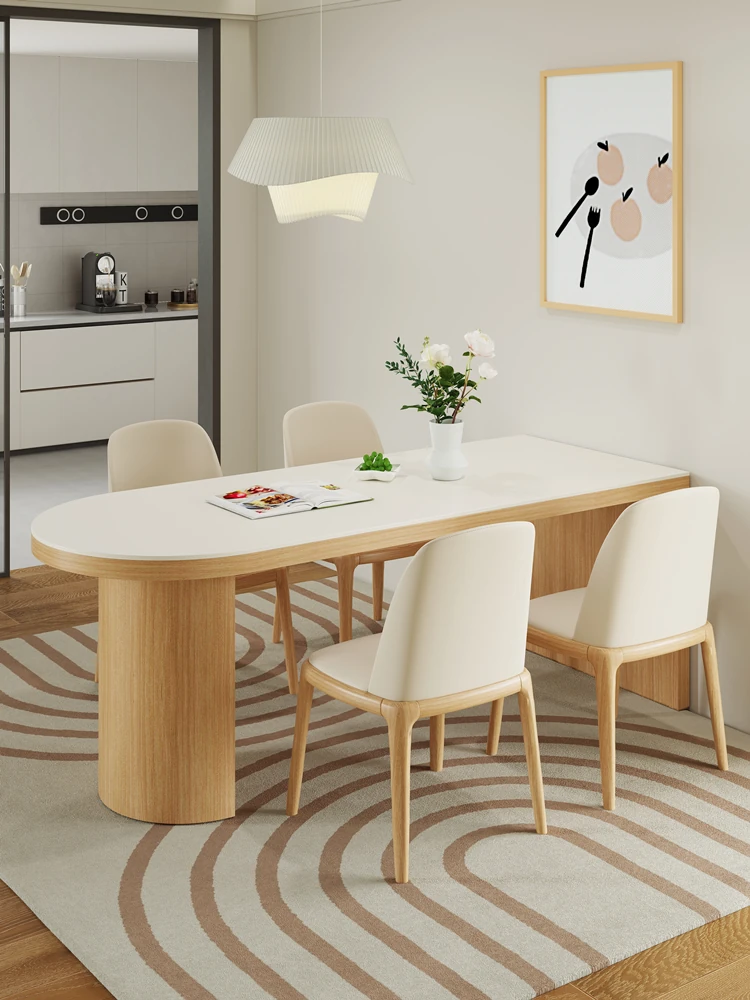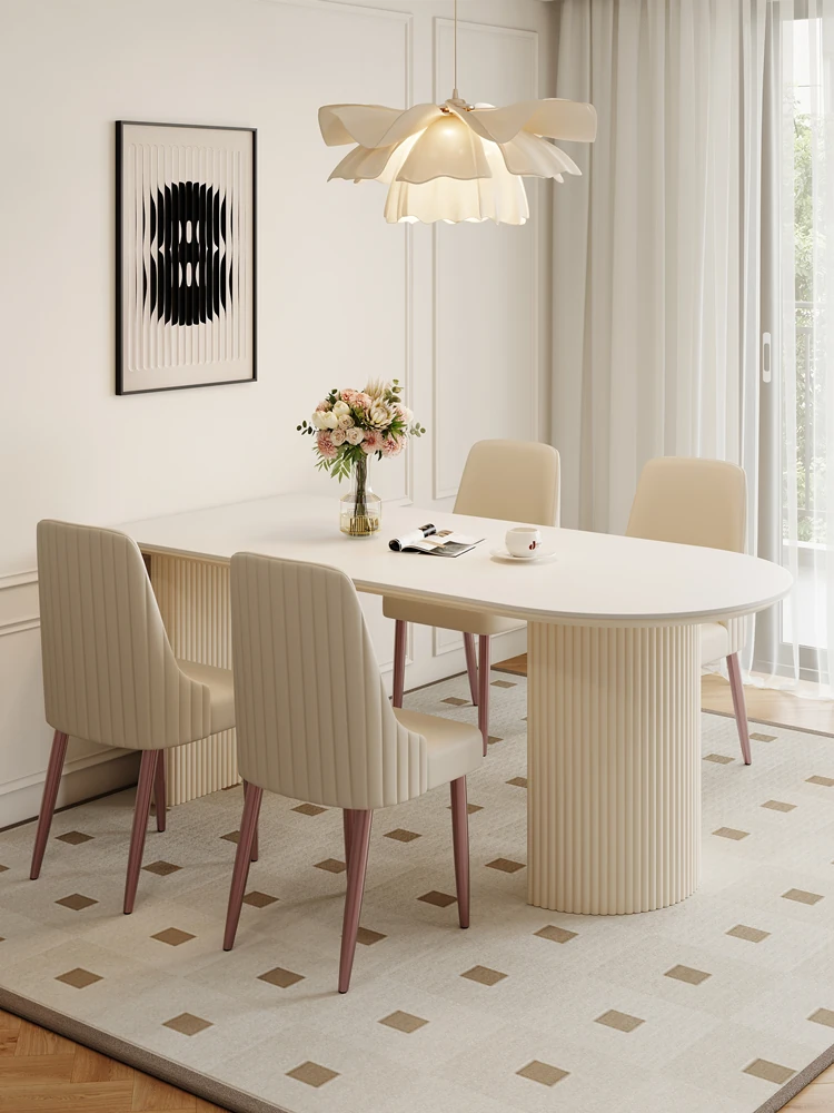 Creamy Wind Rock Plate Dining Table - Elegant New Minimalist Oval White French Vintage Dining Table and Chairs for Small Spaces, Perfect for Modern Homes!