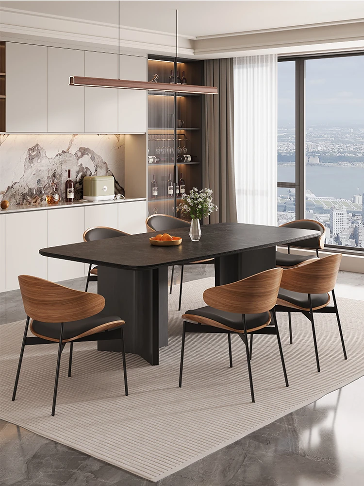 Sleek Glossy Rock Panel Dining Table - Modern Minimalist Design with Imported Ash Wood and Black Solid Wood, Perfect for Small Spaces - Stylish Rectangular Dining Set for Home