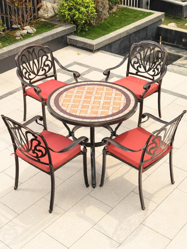 Zili Cast Aluminum Outdoor Dining Set - Waterproof and Sun-Resistant Garden Furniture for Villas, Patios, and Balconies - Stylish Imitation Tile Design for Your Outdoor Space