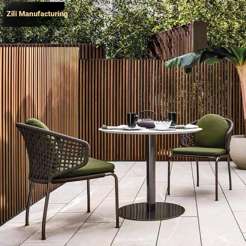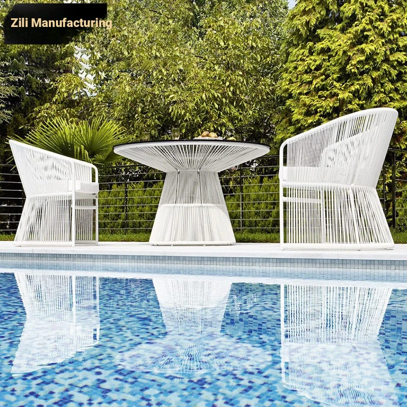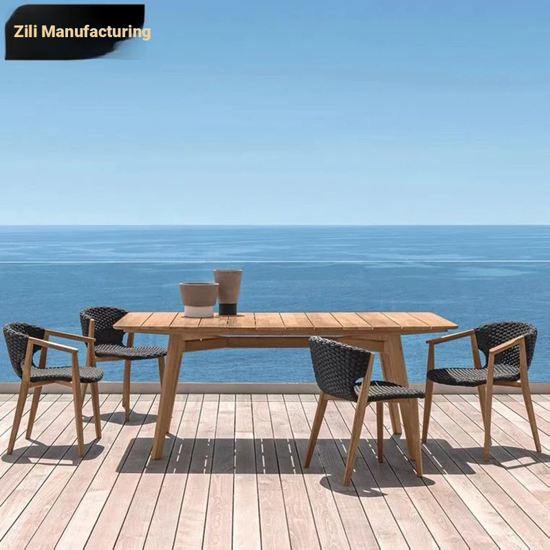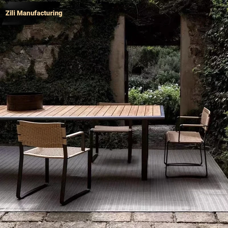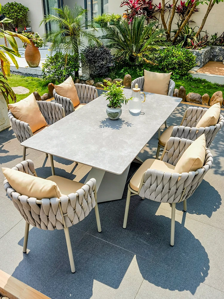Zili Outdoor Aluminum Alloy Table and Chair Set - Lightweight European-Style Dining Furniture for Villas, Courtyards, and Gardens with Rattan Chairs and Rope Long Table Combination for Homestays