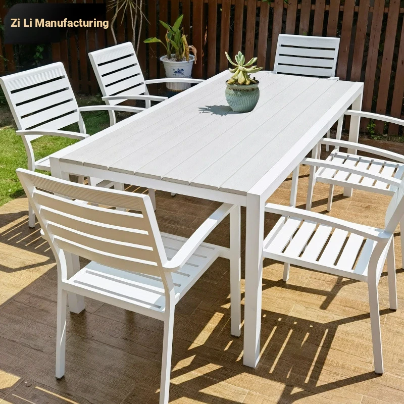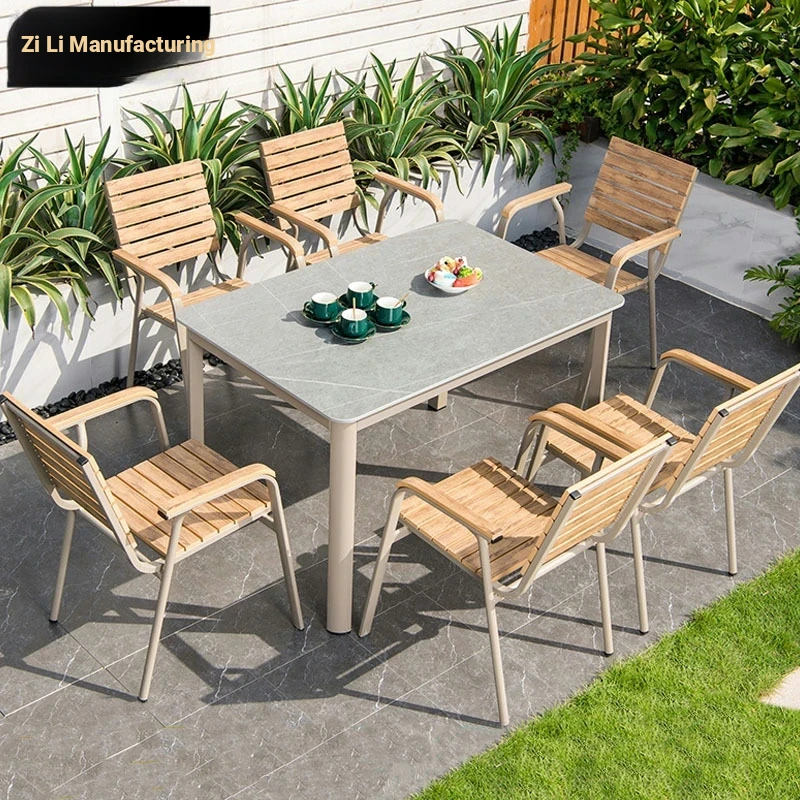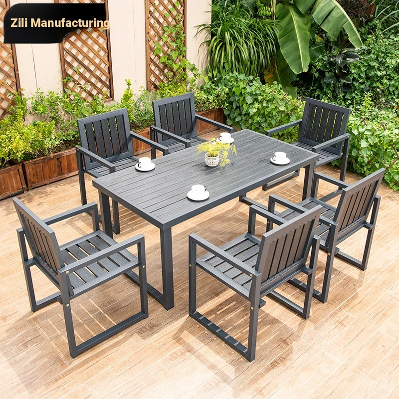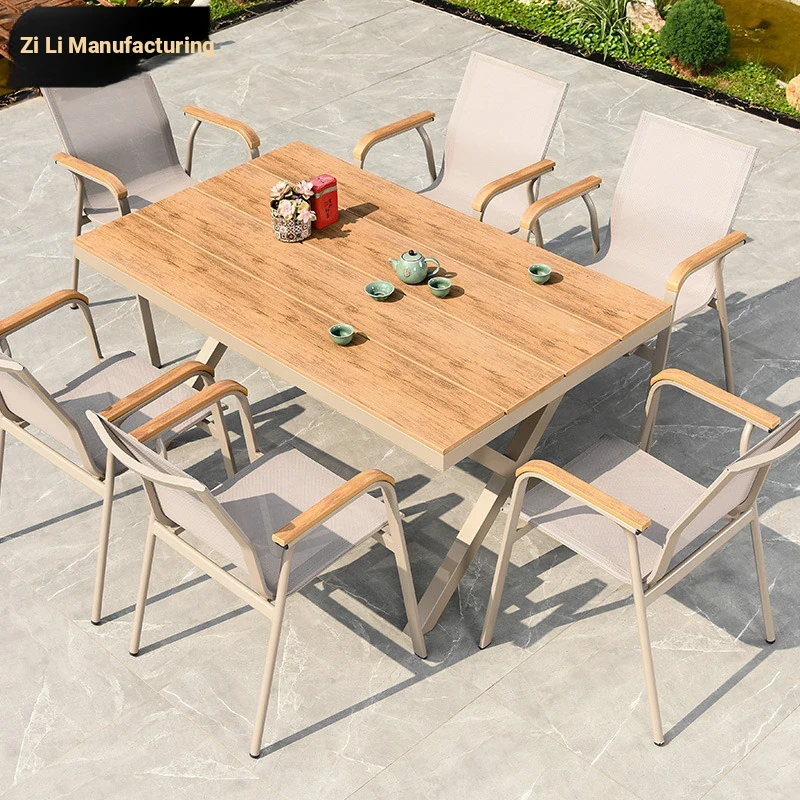 Zili Outdoor Aluminum Alloy Patio Furniture Set - Minimalist and Stylish Wood-Plastic Table and Chairs for Villas, Gardens, and Balconies - Perfect for Relaxing Outdoors!