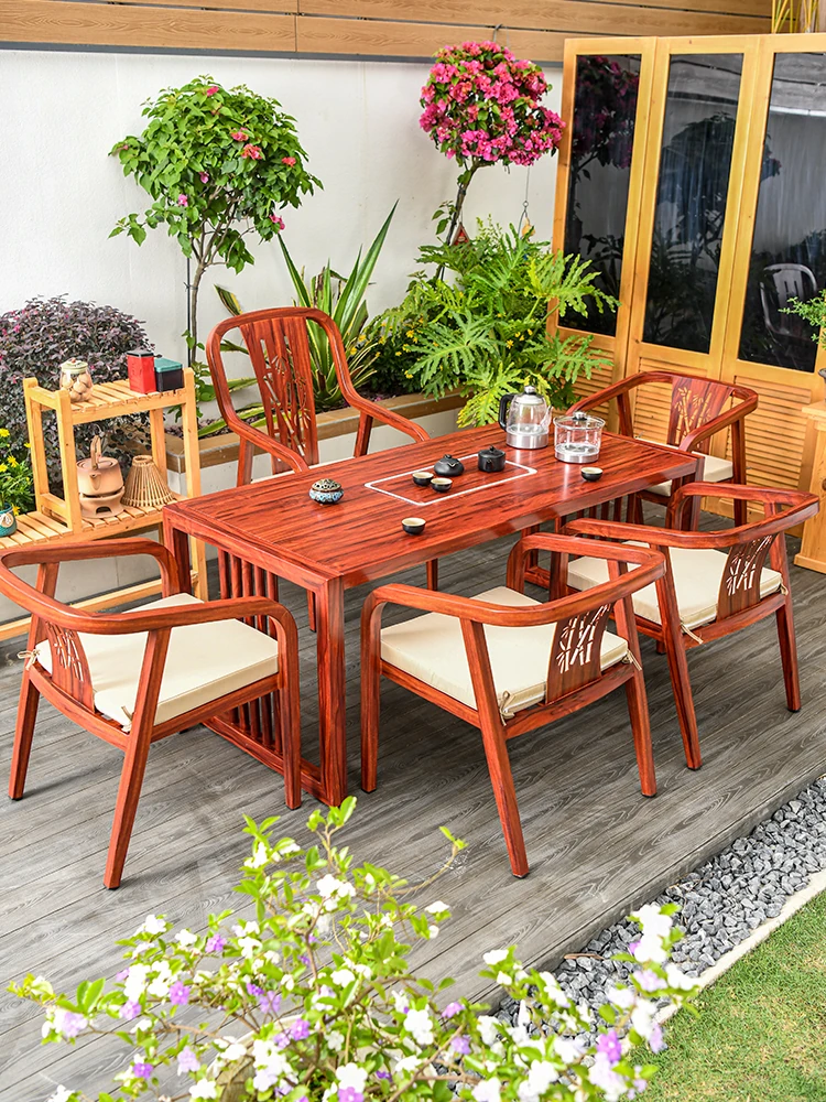 Zili Modern Minimalist Tea Table and Chair Set - New Chinese Style Imitation Mahogany Tea Brewing Table for Balcony Conversations and Relaxation