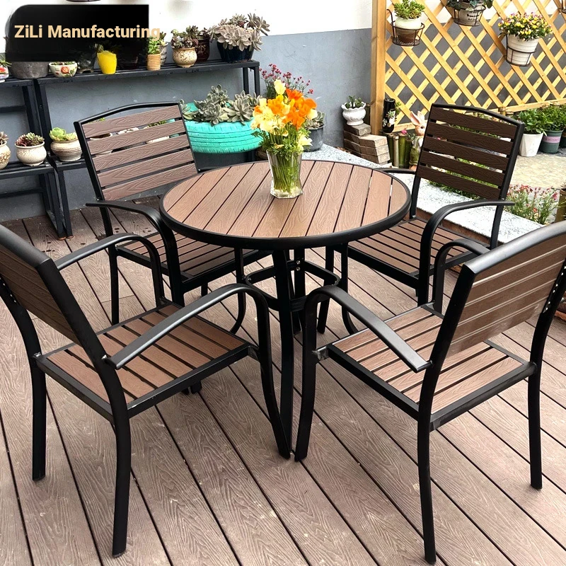 Zili Outdoor Wooden Furniture Set for Milk Tea Shops - Simple and Stylish Patio, Garden, Balcony, and Outdoor Plastic-Wood Table and Chair Combination