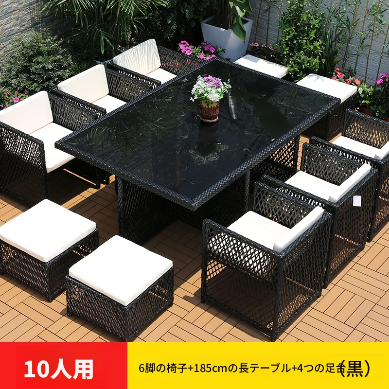 10人用:6脚の箱椅子+185cmの長テーブル+4つの足踏み(黒色)