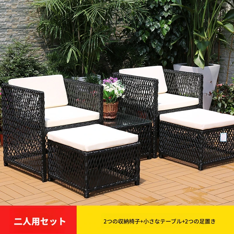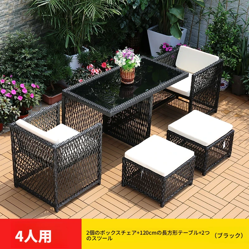 4人用:2つのボックスチェア + 1つの小さなテーブル + 2つのスツール(黒色) 4人用:2つのボックスチェア + 1つの小さなテーブル + 2つのスツール(黒色)