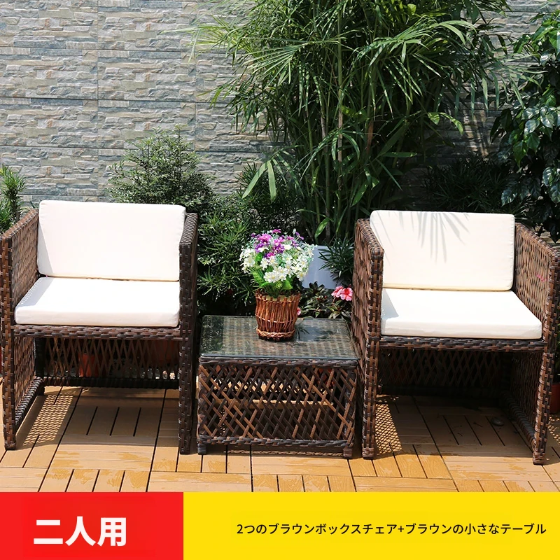 特価3日間!2人用:箱型椅子2脚+小さなコーヒーテーブル(ブラウン)