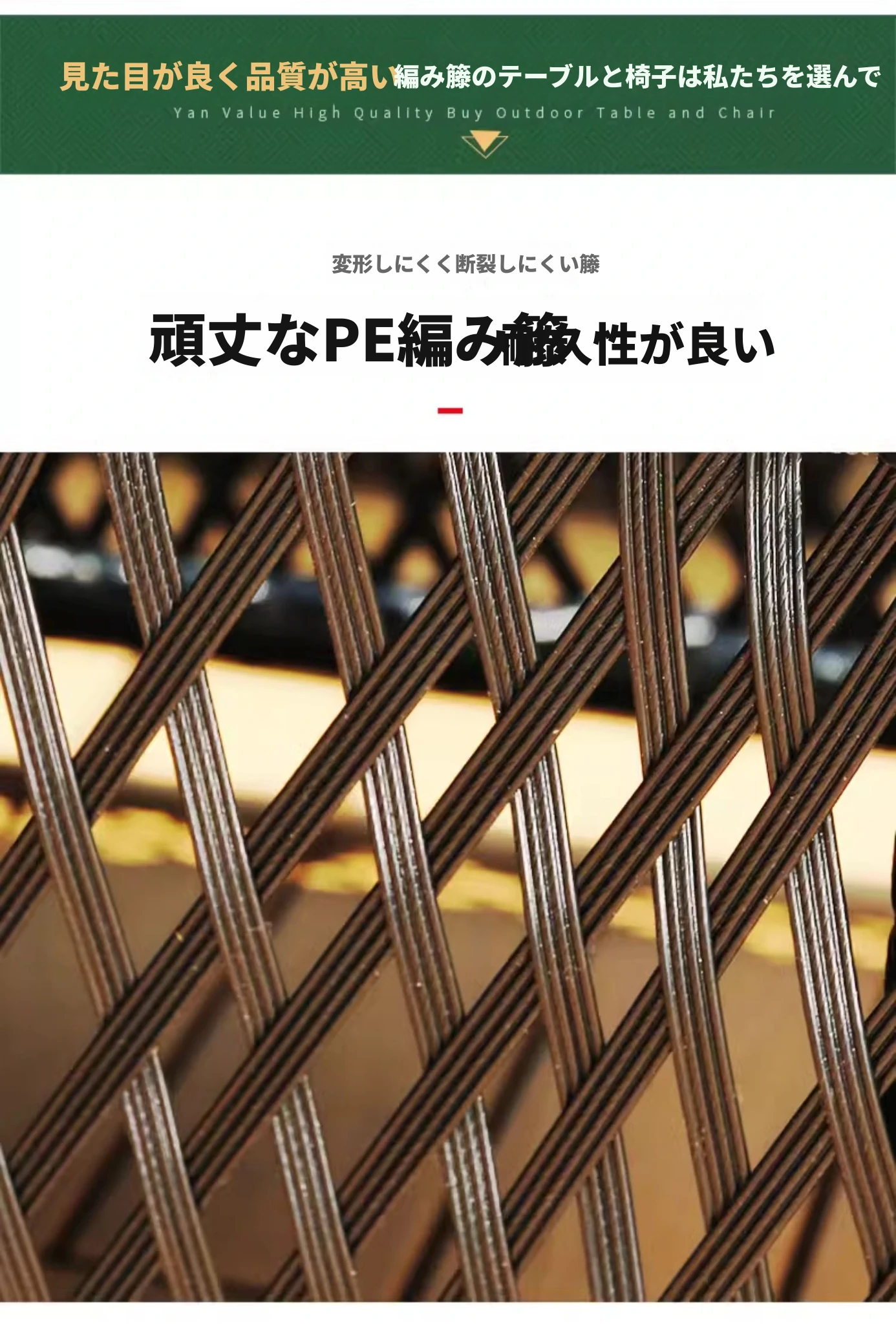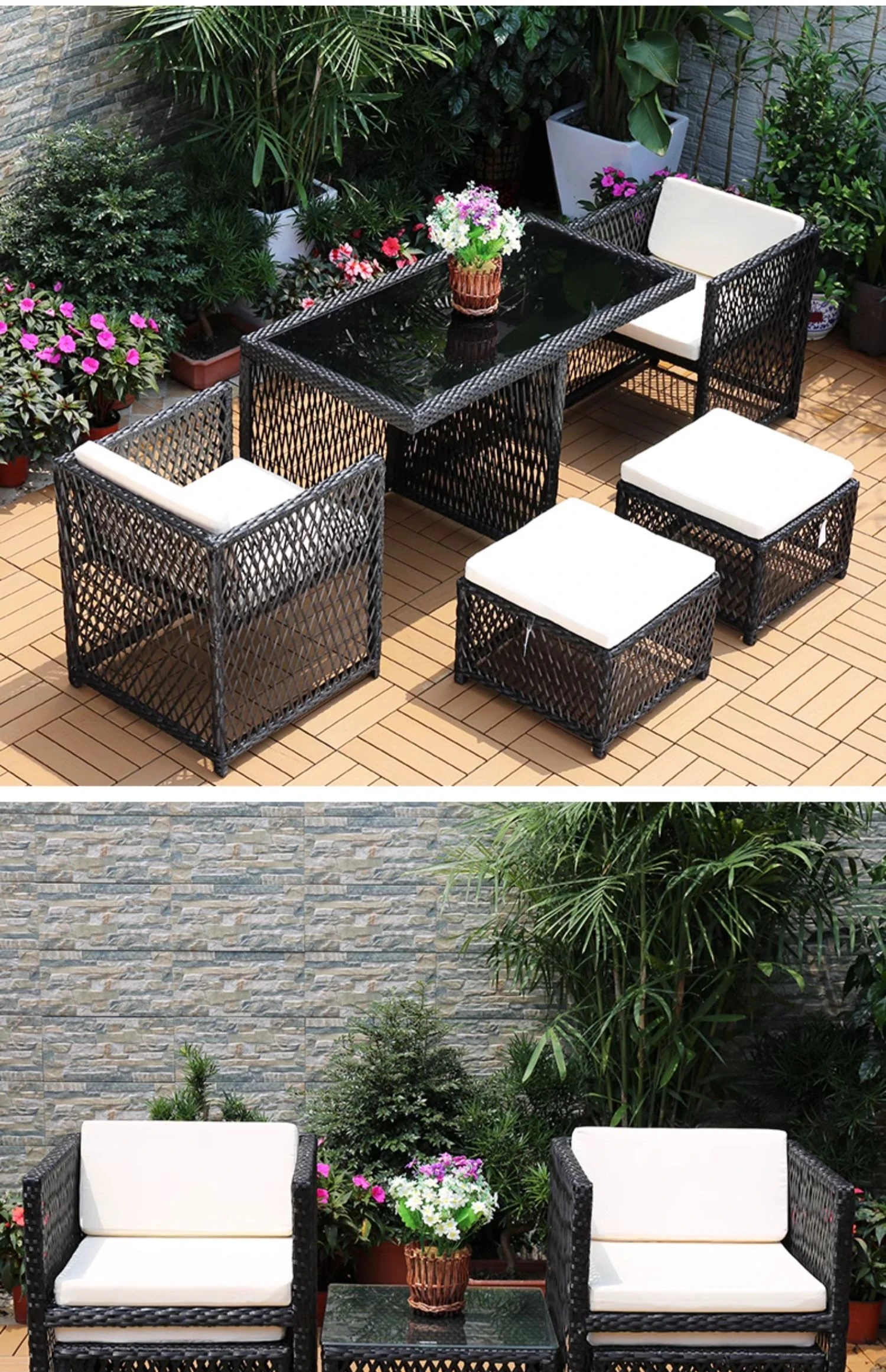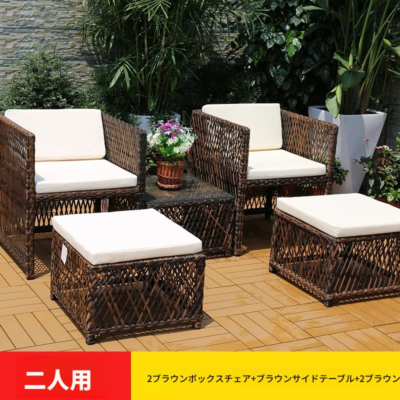 4人用:2つのボックスチェア + 1つの小さなテーブル + 2つのオットマン(ブラウン)