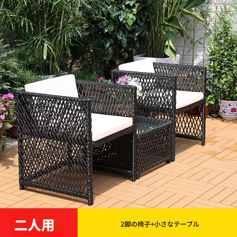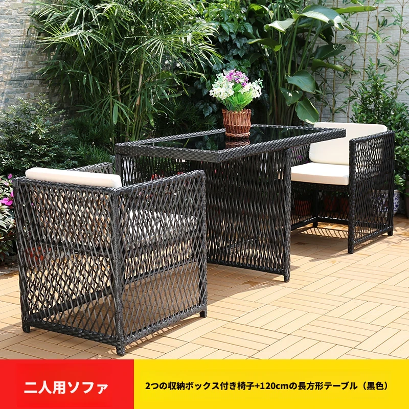 2人用:2つのボックスチェア + 1つの小さなテーブル(黒色)