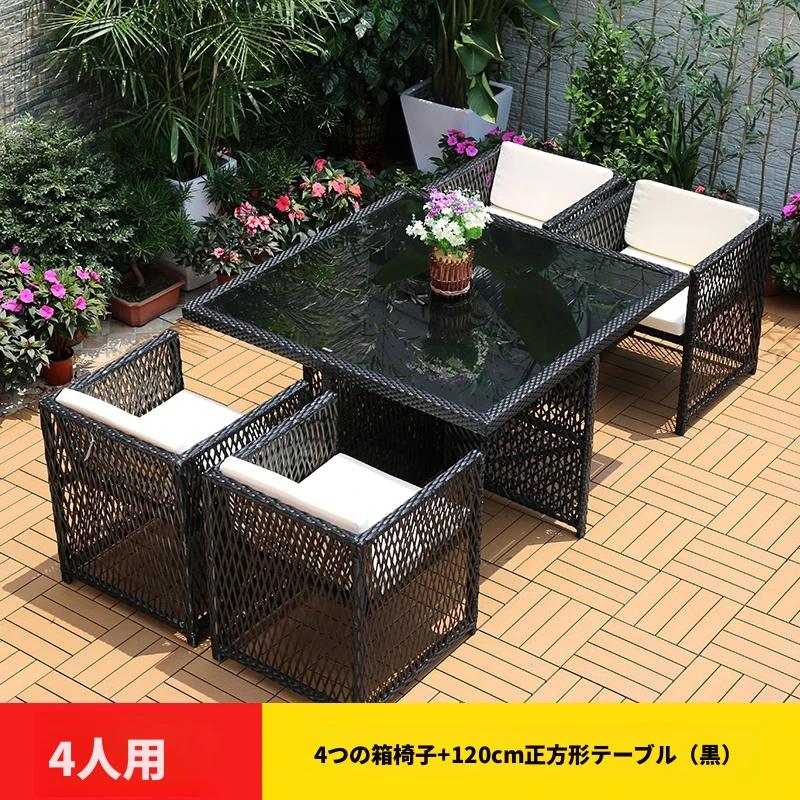 4人用:4つのボックスチェア + 120cm正方形テーブル(黒色)