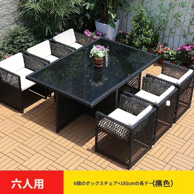 6人用:6個のボックスチェア+185cmの長テーブル(ブラック)