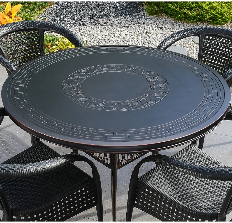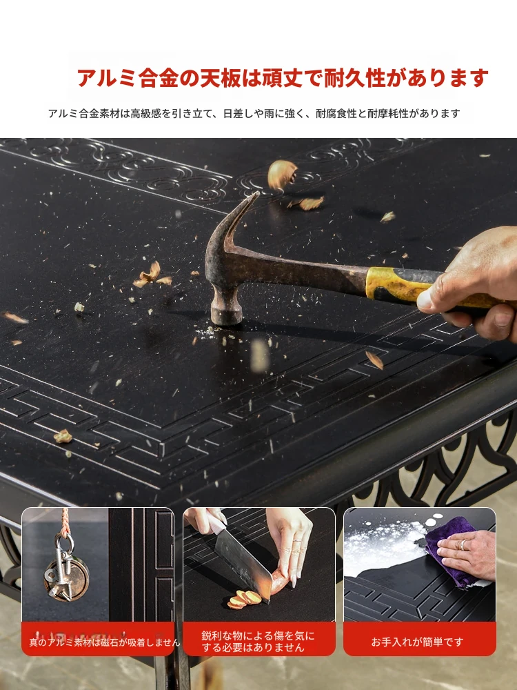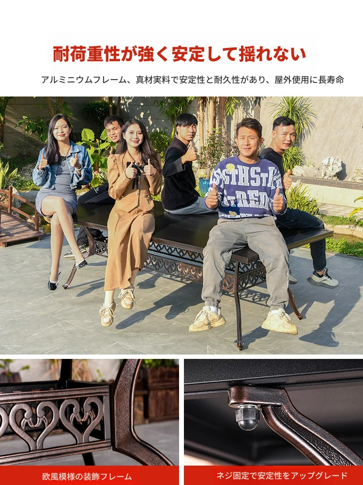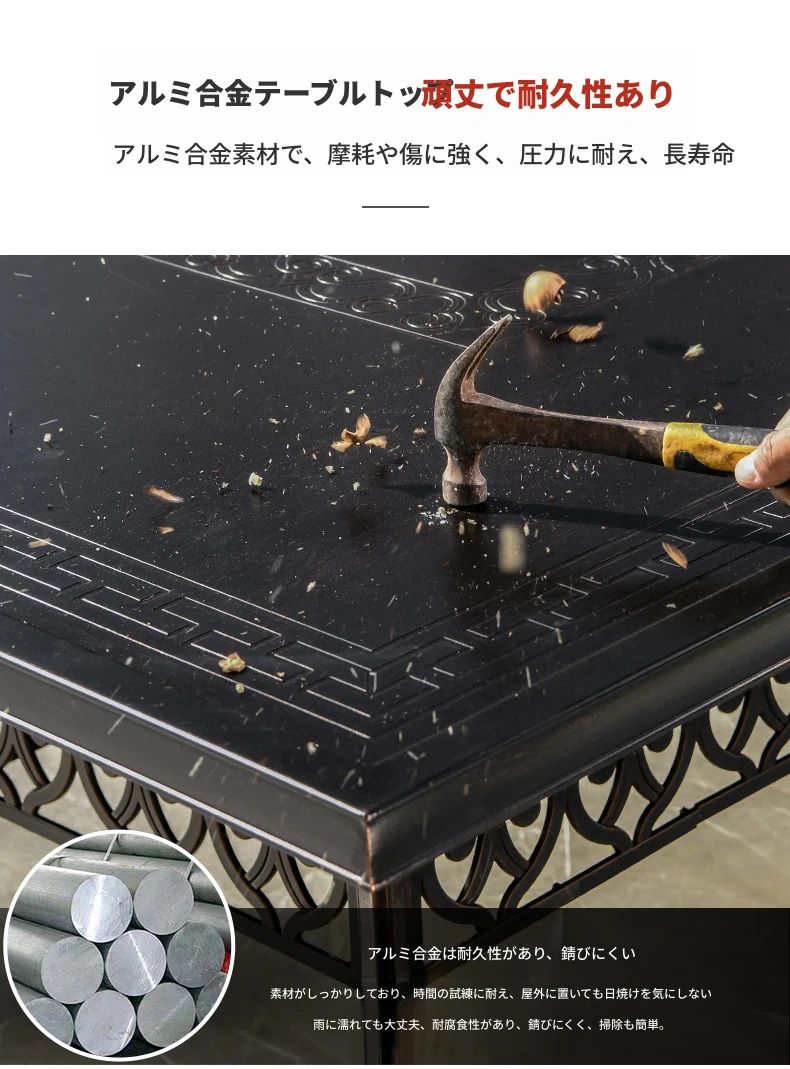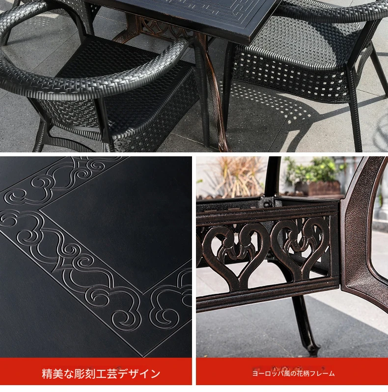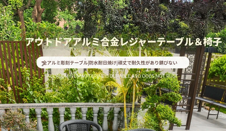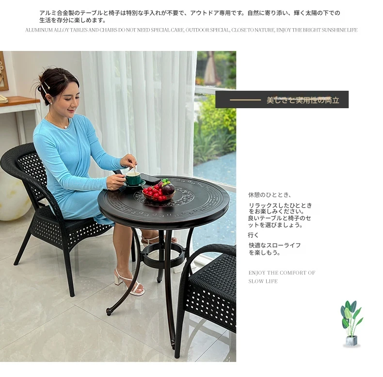 子力アウトドア鋳造アルミニウムテーブルチェアセット - リラックスできる小さなティーテーブル、庭やバルコニーに最適なオープンエアの快適なひとときを提供します!