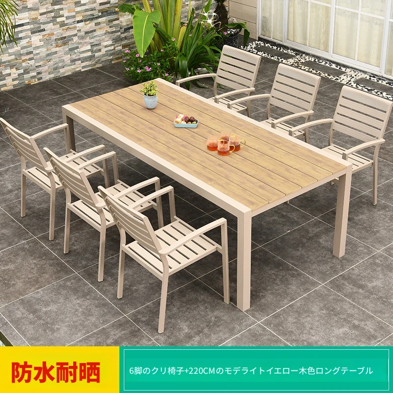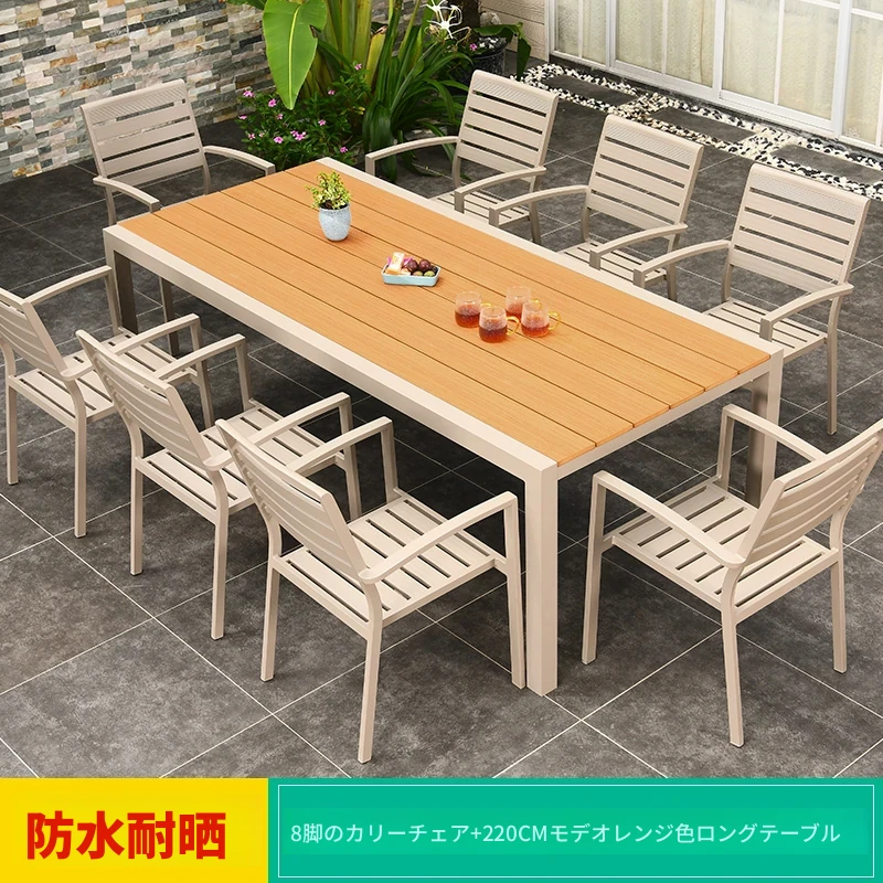8+1【220CMモダンチーク色ロングテーブル】 8+1【220CMモダンチーク色ロングテーブル】