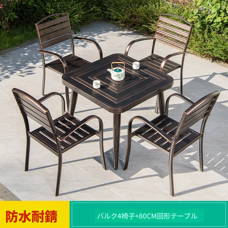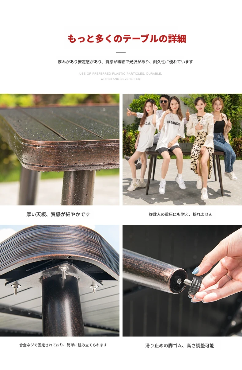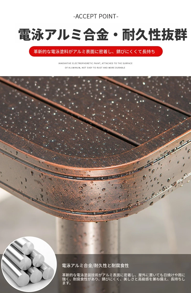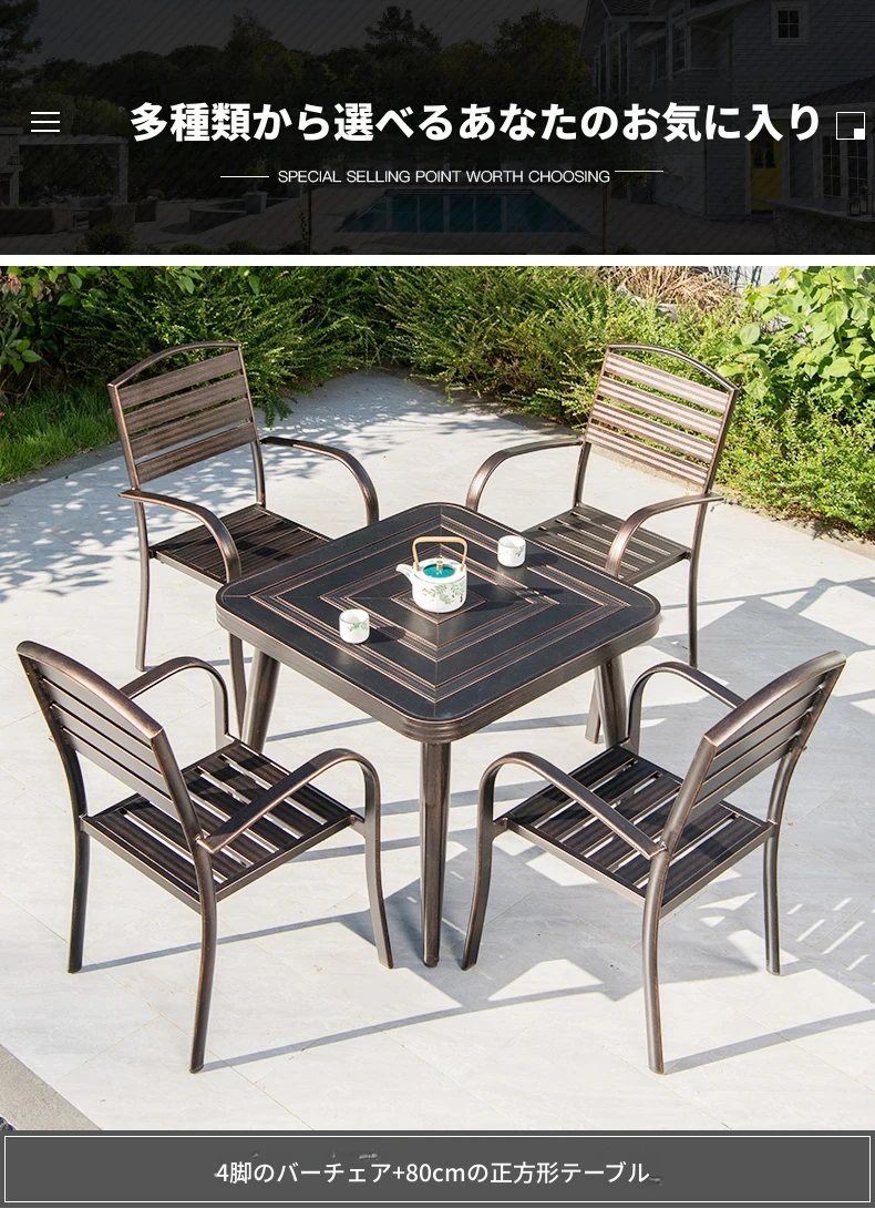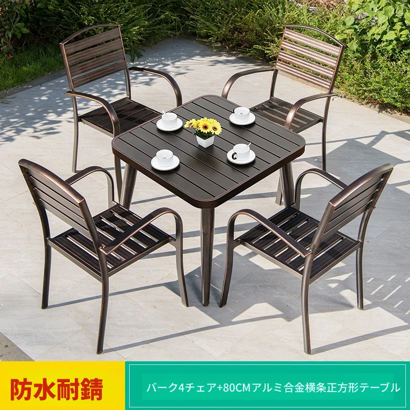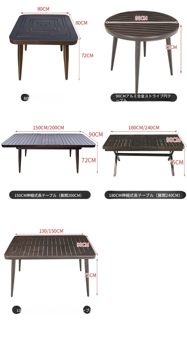 4+1【80cmアルミ合金横条方卓】 4+1【80cmアルミ合金横条方卓】