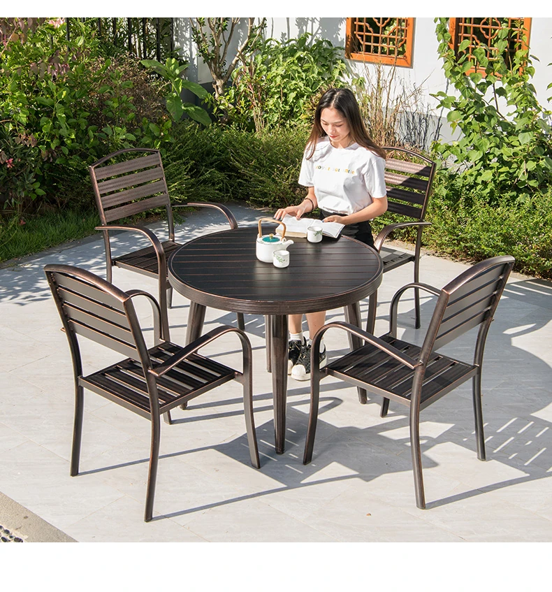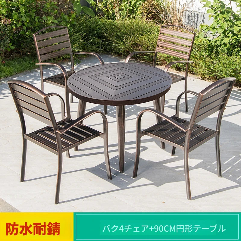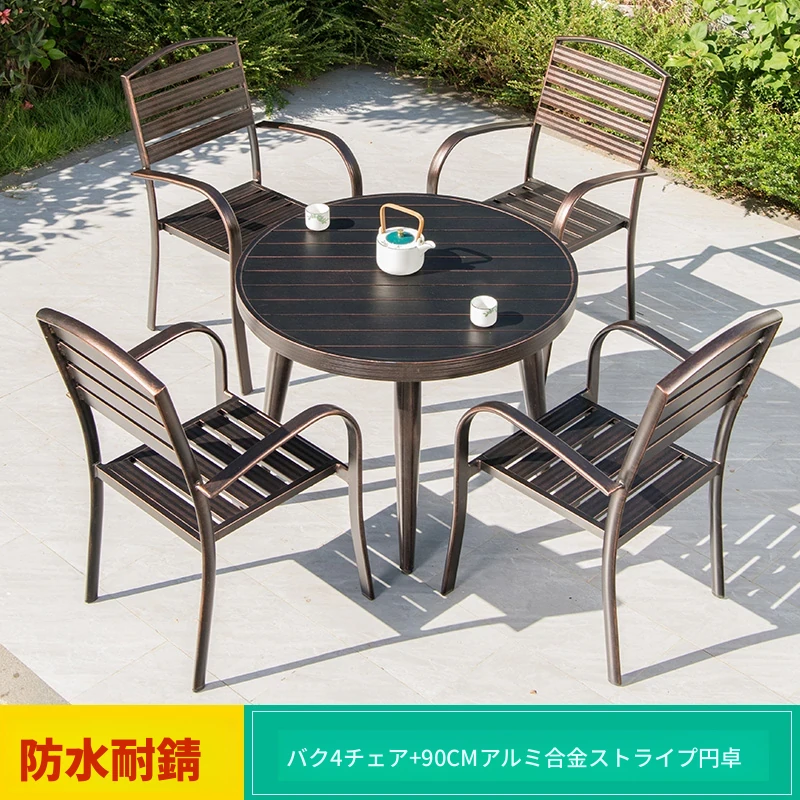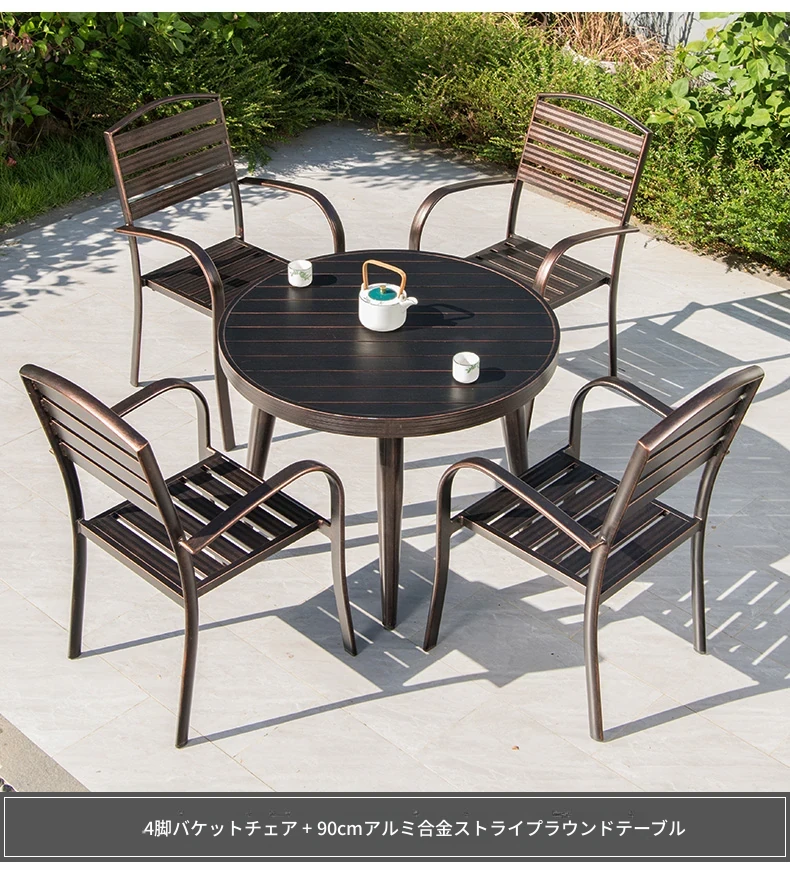 4+1【90cmアルミ合金ストライプ円卓】 4+1【90cmアルミ合金ストライプ円卓】