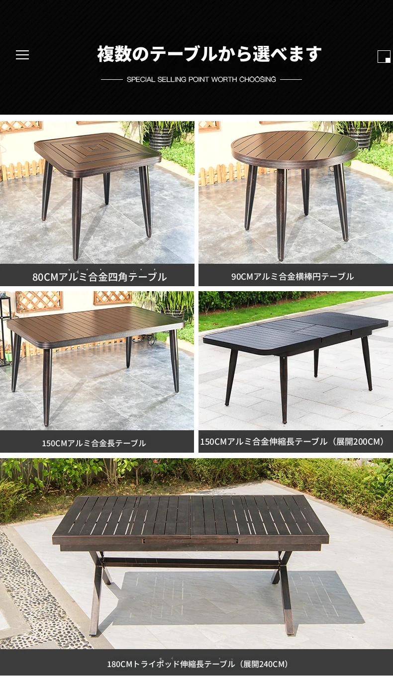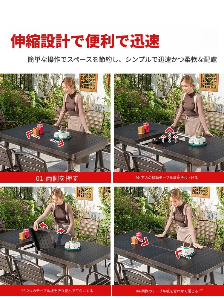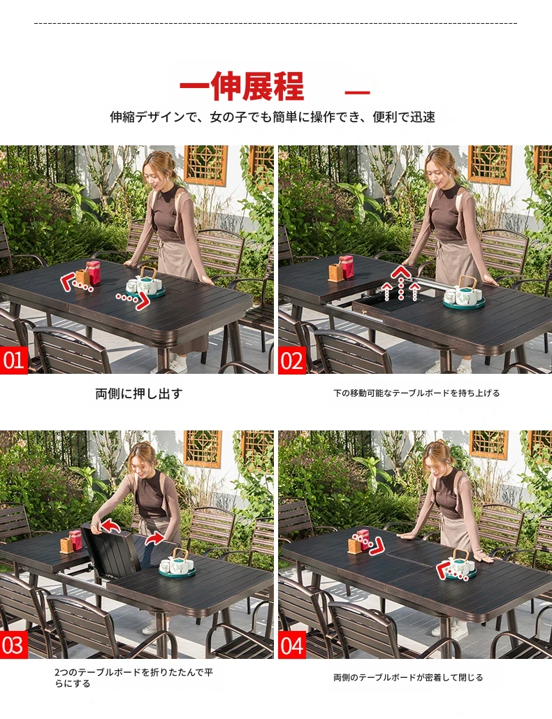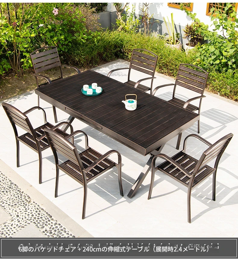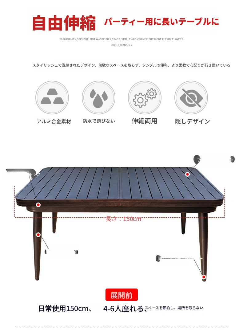6+1【150cmアルミ合金伸縮長テーブル(展開2メートル)】 6+1【150cmアルミ合金伸縮長テーブル(展開2メートル)】