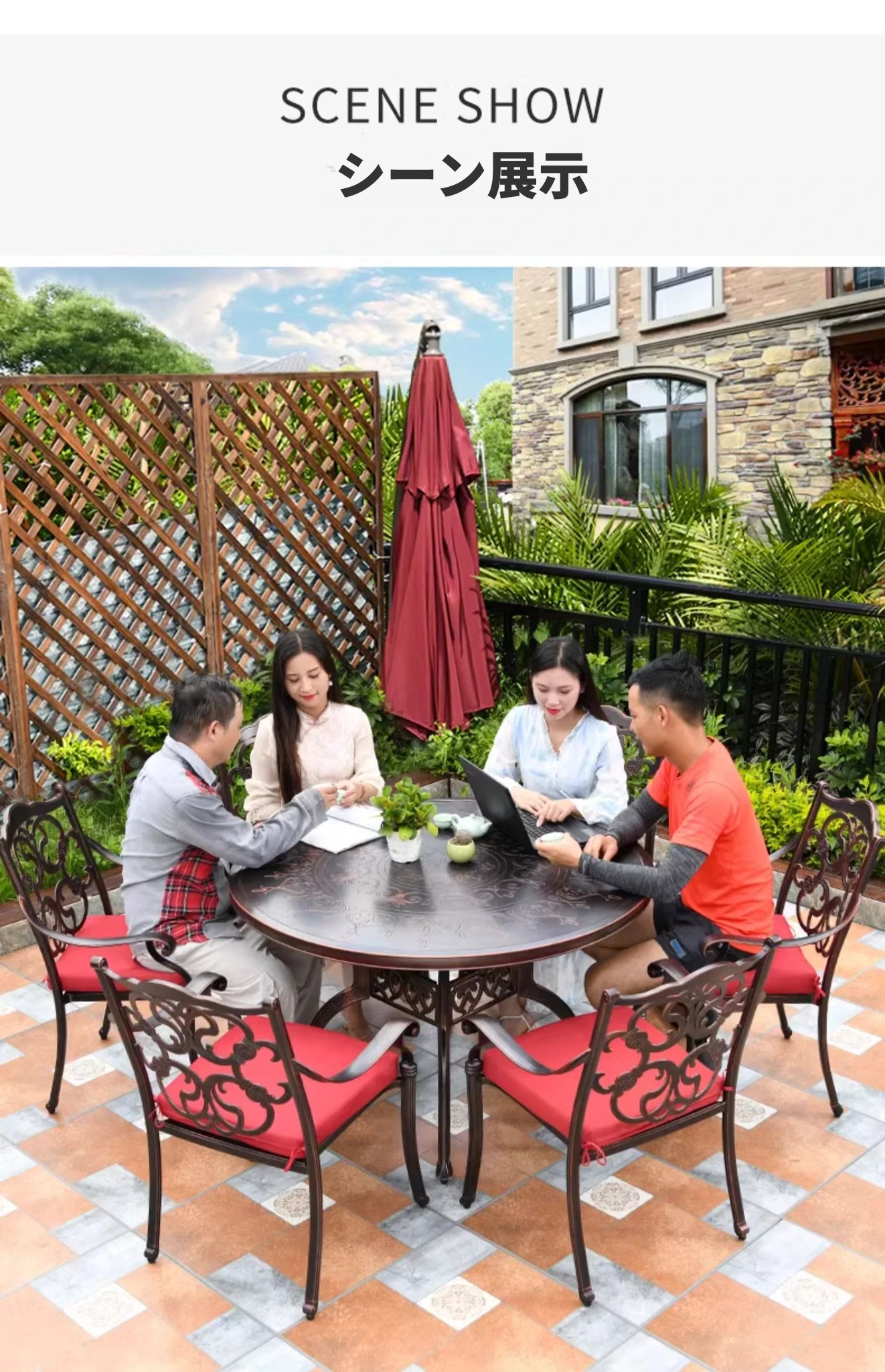 6+1【220cm得利鋳造アルミ長テーブル付き】 6+1【220cm得利鋳造アルミ長テーブル付き】
