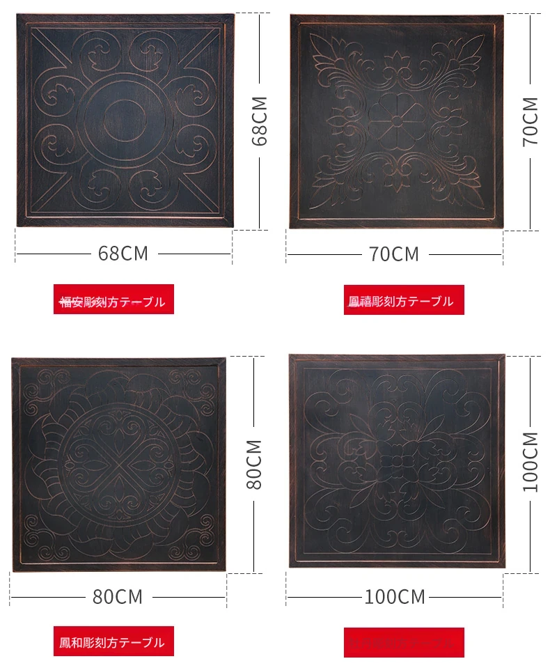 4+1【100cm牡丹彫刻四角テーブル付き】 4+1【100cm牡丹彫刻四角テーブル付き】