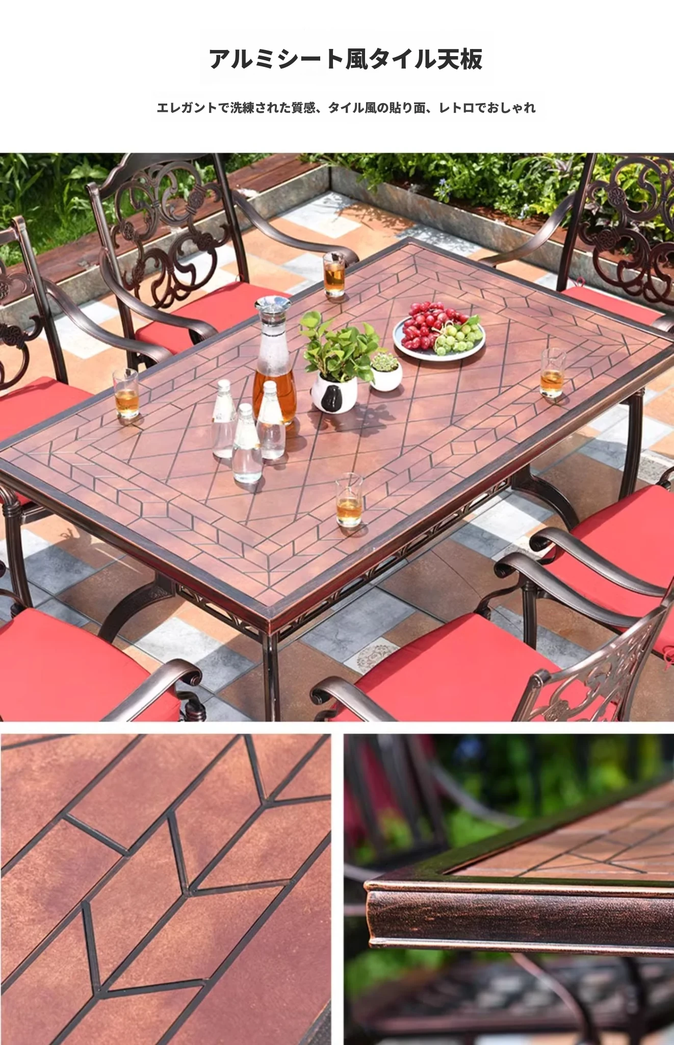 6+1【150cmシアアルミ板模擬磁器タイル長テーブル付き】 6+1【150cmシアアルミ板模擬磁器タイル長テーブル付き】