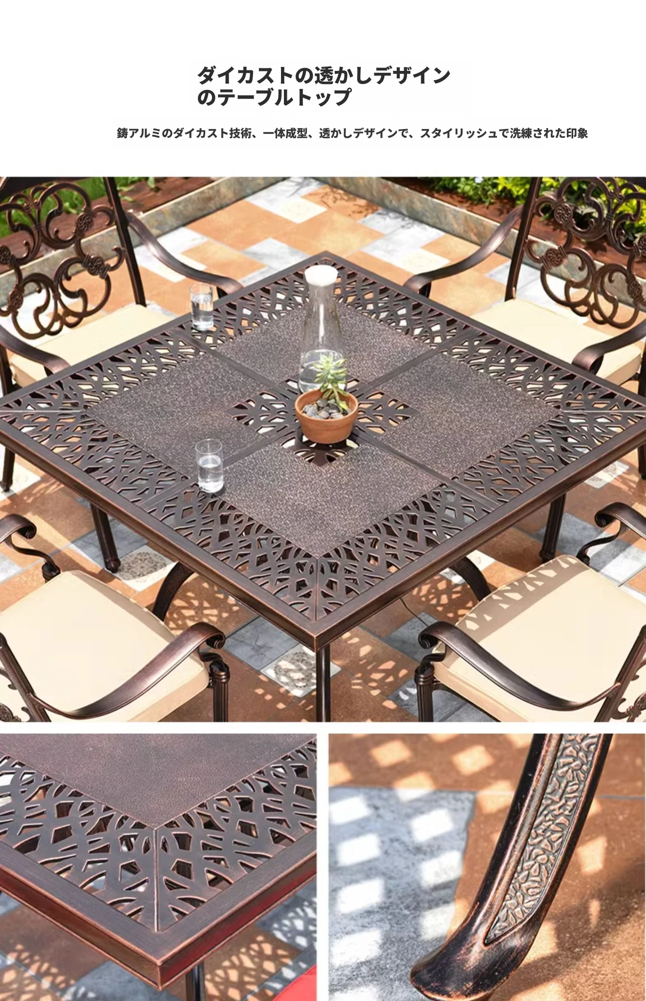 4+1【115cm得利鋳造アルミ四角テーブル付き】 4+1【115cm得利鋳造アルミ四角テーブル付き】