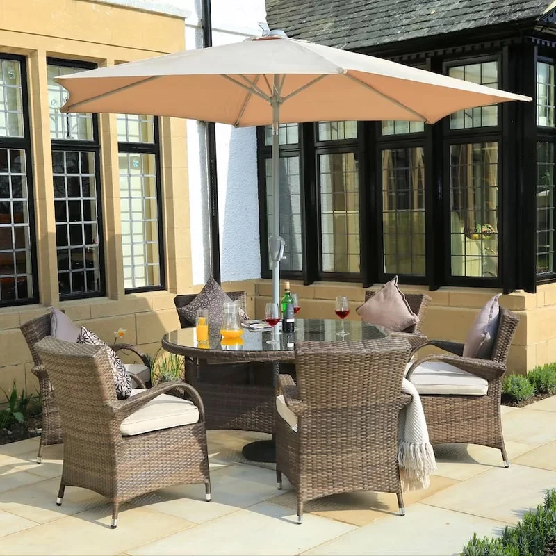 一卓6椅120直径円卓+中柱傘(クッション付き)