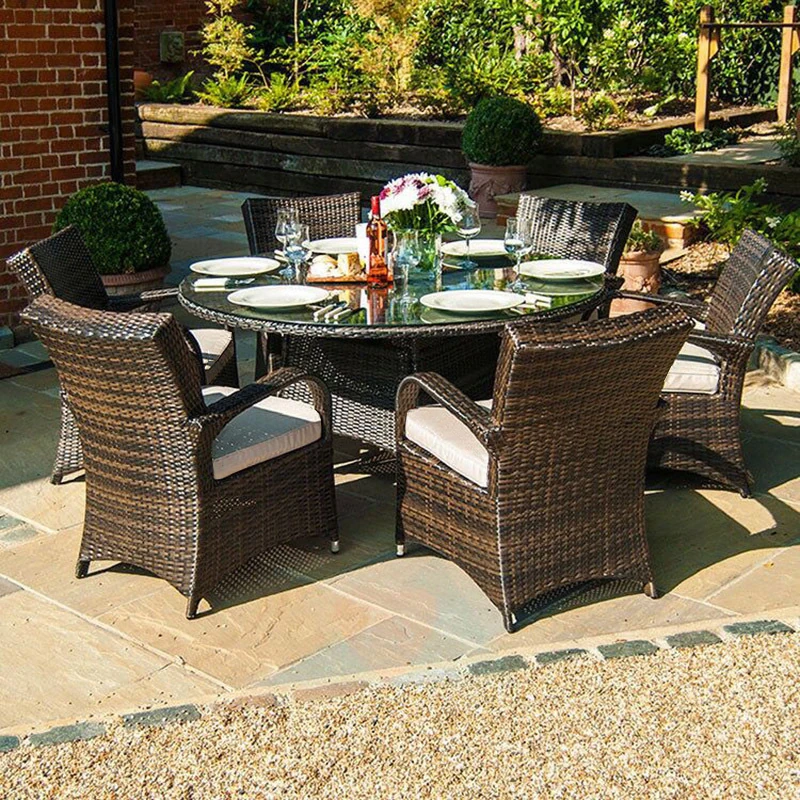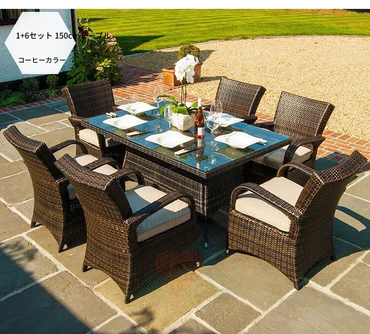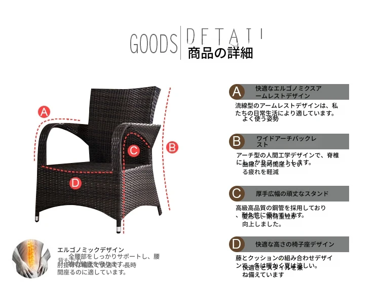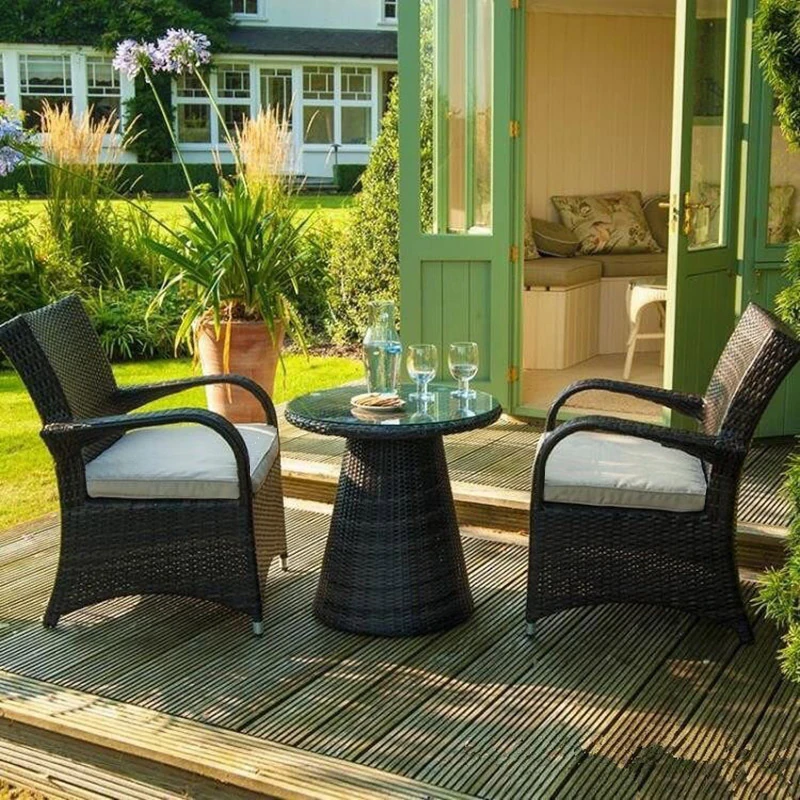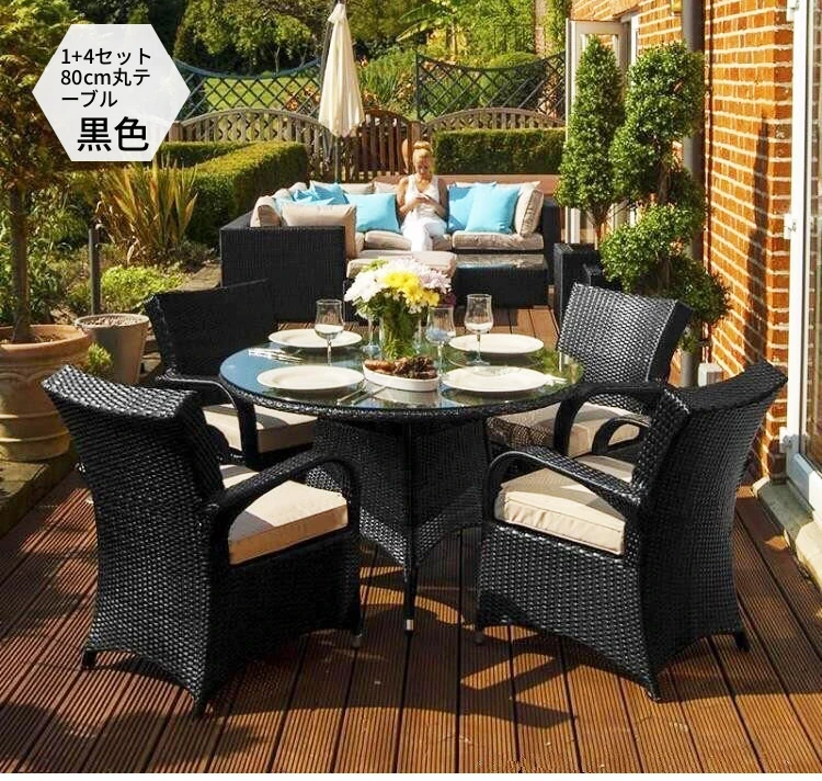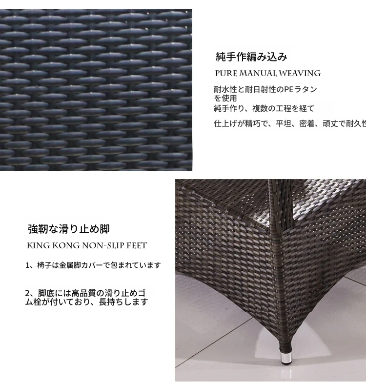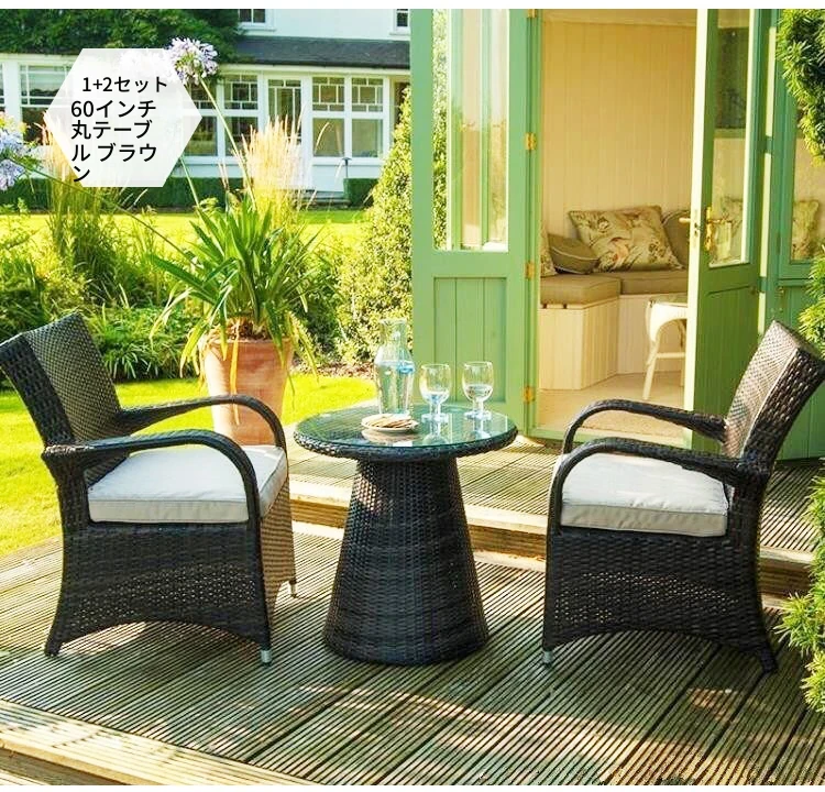 子力アウトドアラタンチェア - 雨や日差しを気にせず楽しめる、バルコニーや庭にぴったりのリラックスデザイン!おしゃれなラタン製のテーブル&チェアセットで、屋外での食事やくつろぎのひとときを演出します。