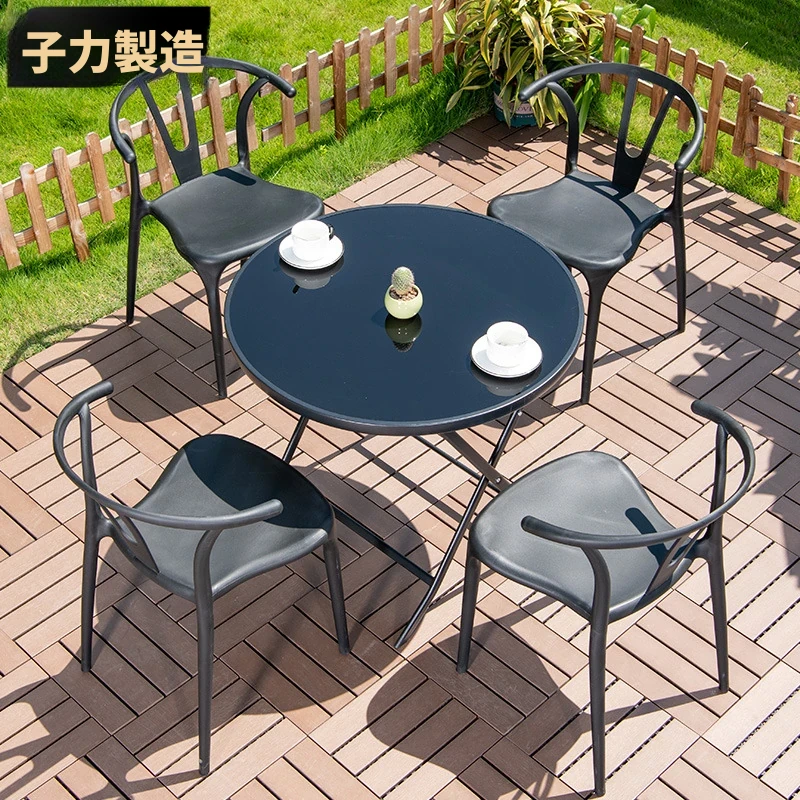 子力アウトドアプラスチックチェア - ガーデンやバルコニーにぴったり!リラックスできるスタイルで、人気の岩板テーブルとセット。おしゃれなデザインで、屋外での特別なひとときを演出します。