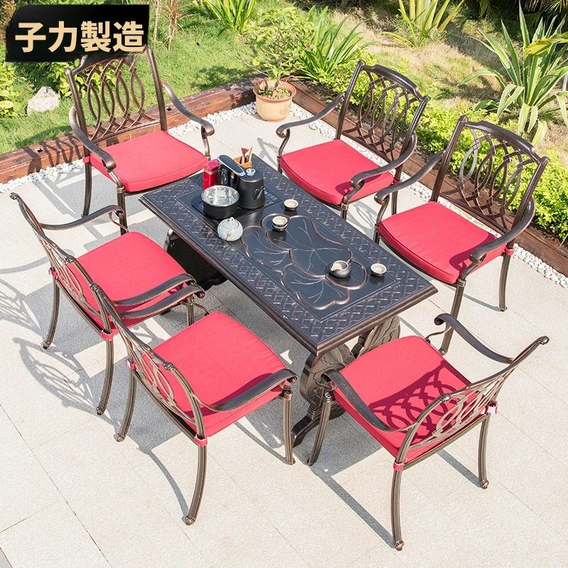 子力アウトドアテーブルセット - 庭やバルコニーに最適なアルミ鋳造タイルテーブルとリラックスできるラタンチェア。シンプルでスタイリッシュなデザイン、快適なひとときを提供します!
