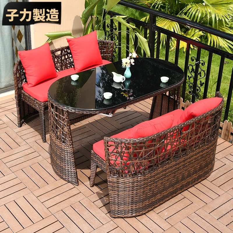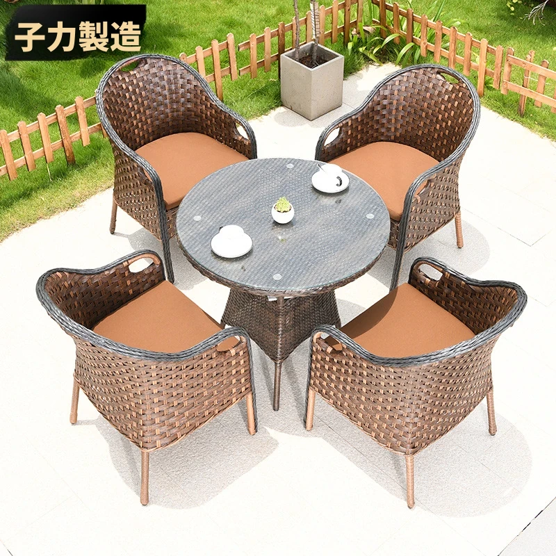 子力庭院のスタイリッシュなラタン製テーブル&チェアセット!屋外の庭やバルコニーに最適なリラックススペースを演出します。美しいデザインで、別荘やテラスでの特別なひとときをお楽しみください。