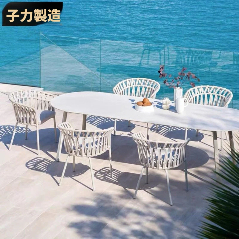 子力アウトドア北欧クリエイティブテーブル&チェアセット - 美しい庭やテラスにぴったり!新作ロープ編みテーブル&チェアで、快適なアウトドアライフを楽しもう!