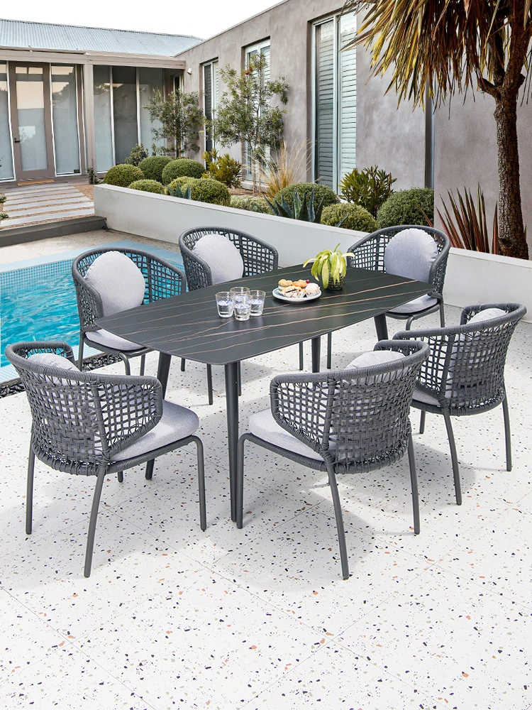 子力アウトドアテーブル&チェアセット - ガーデン・テラス・ヴィラに最適なモダンでクリエイティブなデザイン!シンプルでありながらリラックスできる空間を演出、快適なひとときをお楽しみください。