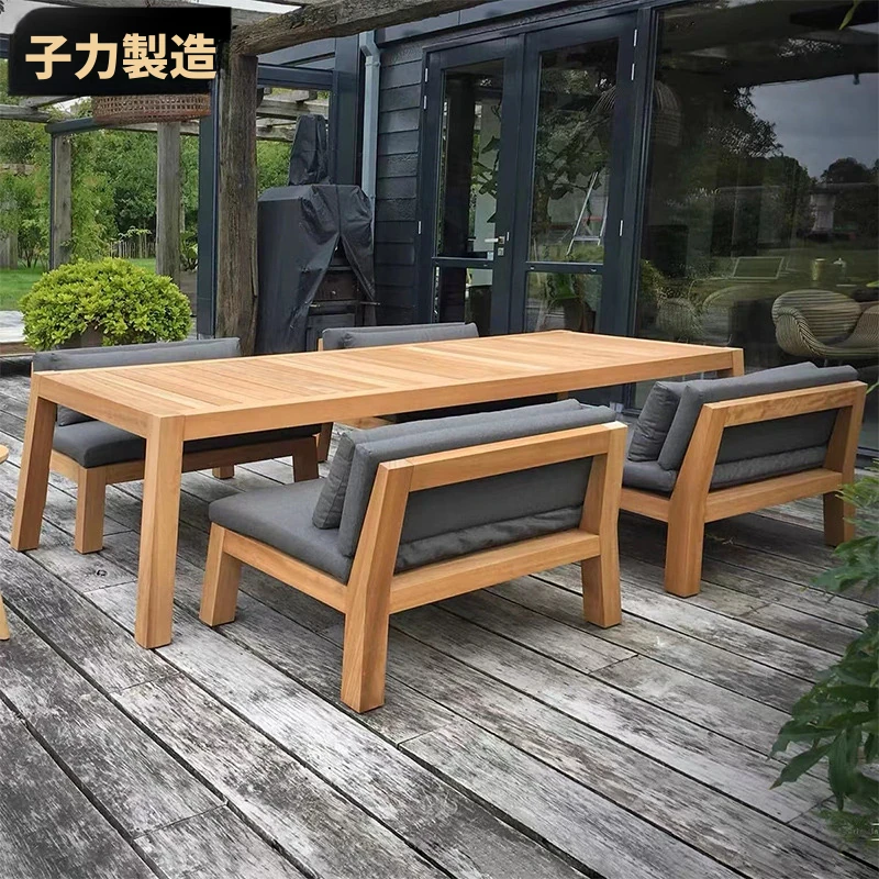 子力北欧スタイルのアウトドアダイニングテーブル&ベンチセット - ホテルや別荘に最適!軽量で耐腐食性のあるチーク材使用、リラックスしたひとときをお楽しみください。