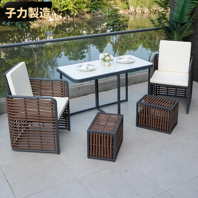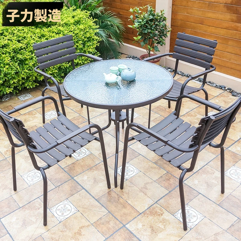 子力アウトドアテーブル&チェアセット - 防水加工で快適な庭やカフェに最適!現代的でシンプルなデザイン、屋外バルコニーや庭でのリラックスタイムを演出します。