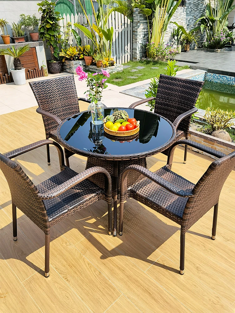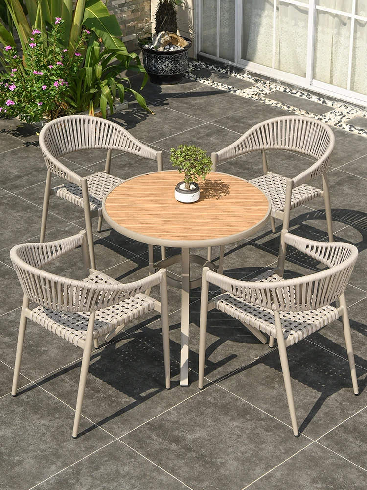 子力アウトドア北欧スタイルテーブル&チェアセット - 庭やバルコニーに最適なミニマリストデザイン!リラックス空間を演出する、編み込みスタイルの組み合わせで、屋外でのひとときをお楽しみください。