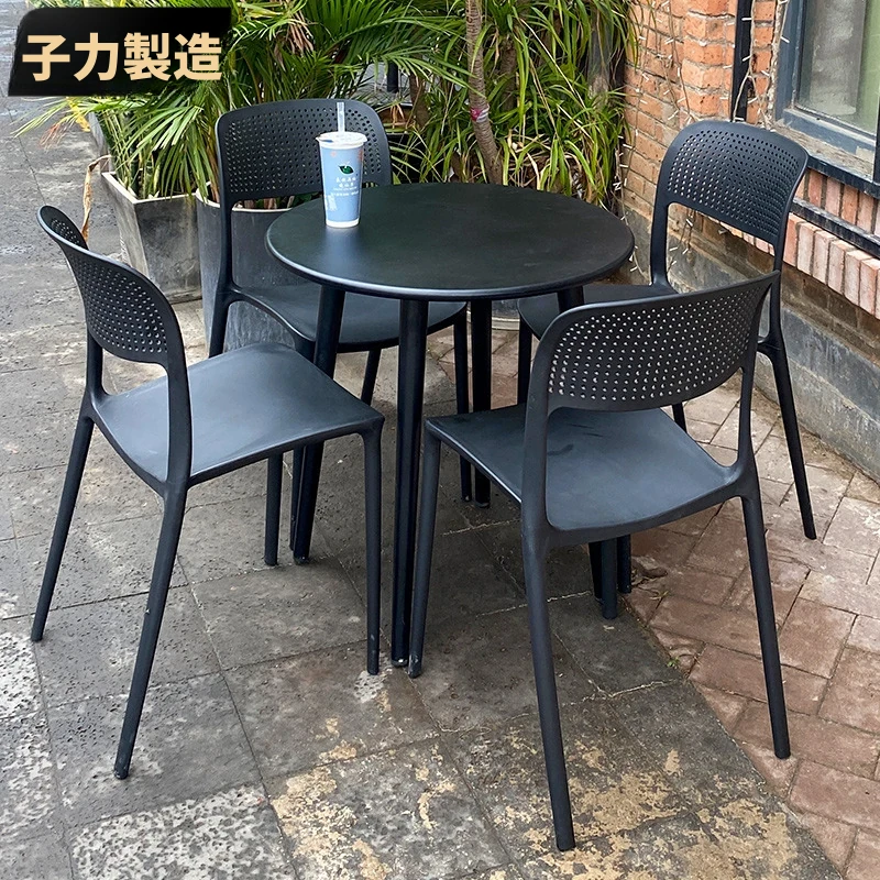 シンプルでスタイリッシュなプラスチック製アウトドアテーブルとチェア - ガーデン、パティオ、カフェに最適なリラックス空間を演出!軽量で移動も簡単、快適なひとときをお楽しみください。