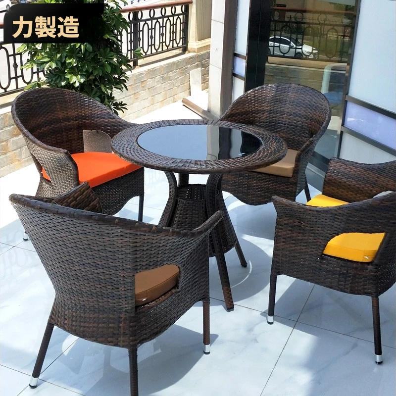 子力アウトドアテーブルセット - 快適なラタン製椅子とテーブル、庭やバルコニーに最適!リラックスしたひとときを演出する編み込みデザインの休憩スペースをお楽しみください。