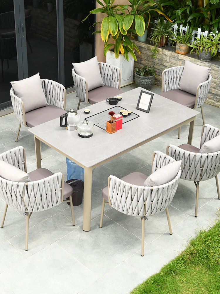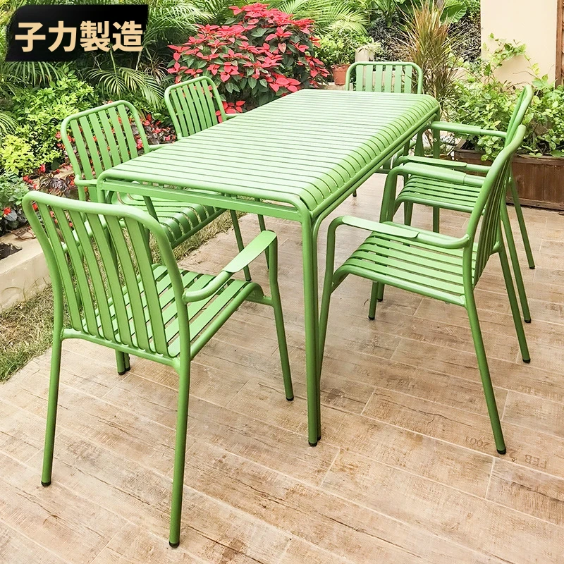 子力のアウトドアアルミ製ダイニングテーブル&チェアセット - リラクゼーションに最適な庭や屋外スペースにぴったり!ステンレス製の公園ベンチもあり、軽量でデザイン性抜群のヨーロピアンスタイル家具。