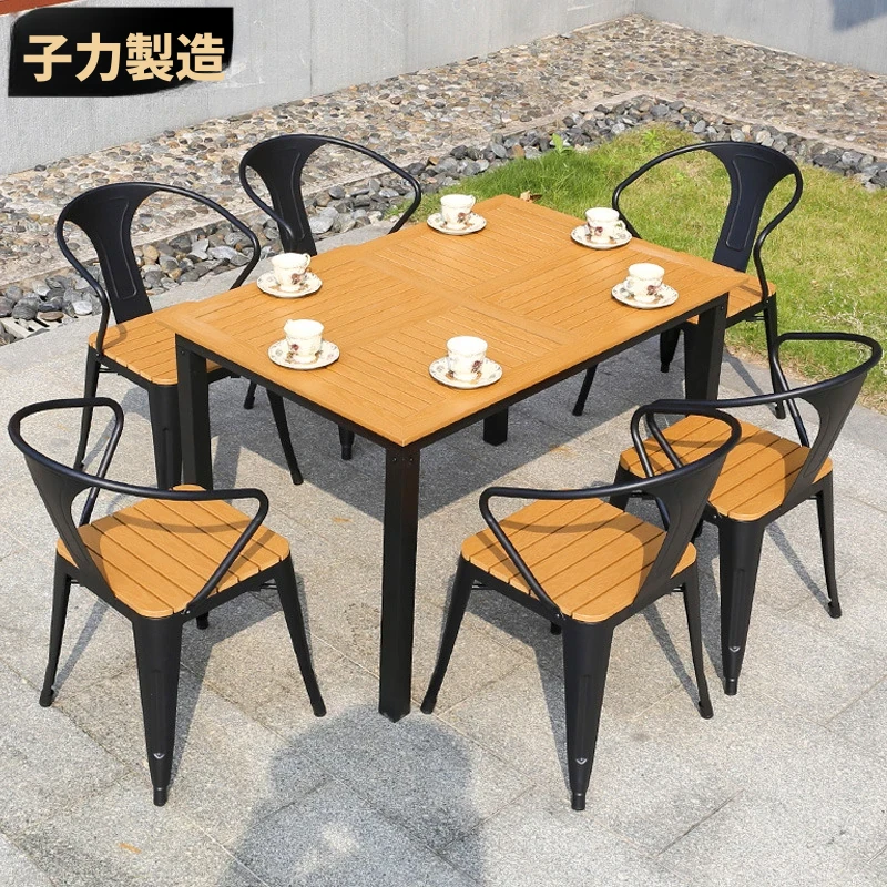 子力アウトドアガーデンテーブル&チェアセット - 北欧スタイルの屋外バルコニー用、リラックスできるプラスチックウッド製テーブル&チェア、庭やテラスに最適!快適なひと時をお楽しみください。