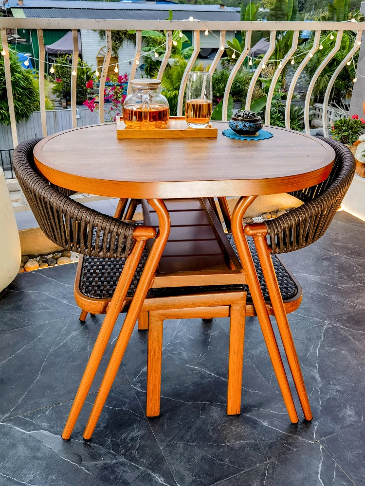子力アウトドアバルコニー用3点セット!リラックスできるテーブルと2脚の椅子、スタイリッシュなラタンチェアコンビネーションで、屋外のひとときを優雅に演出します!