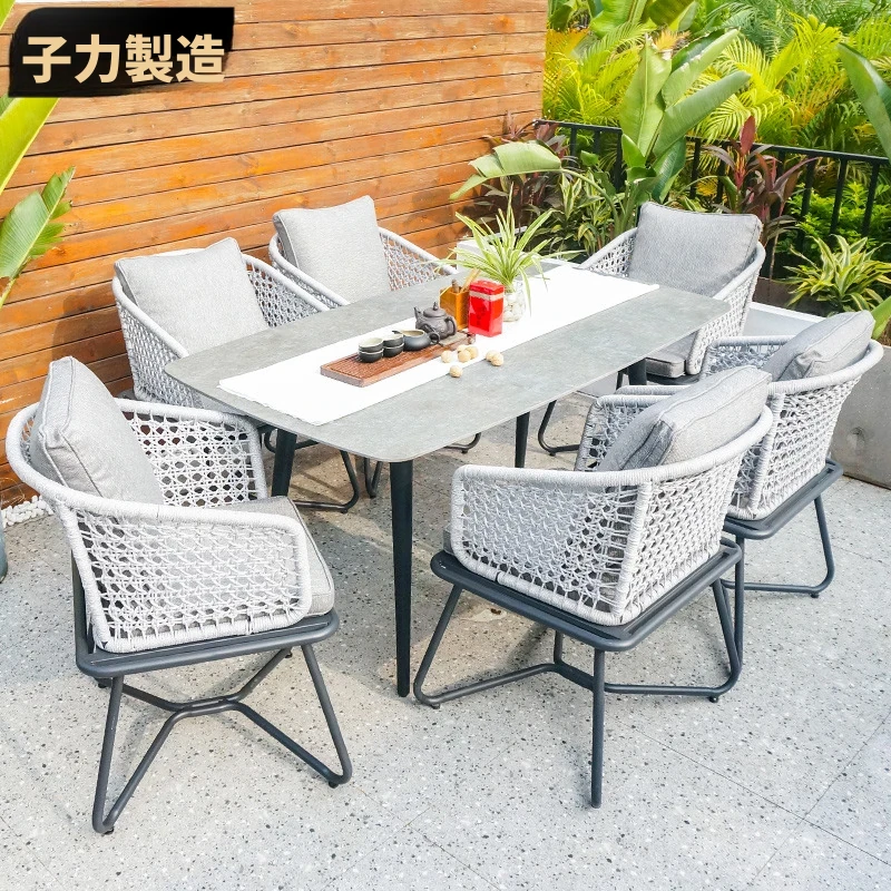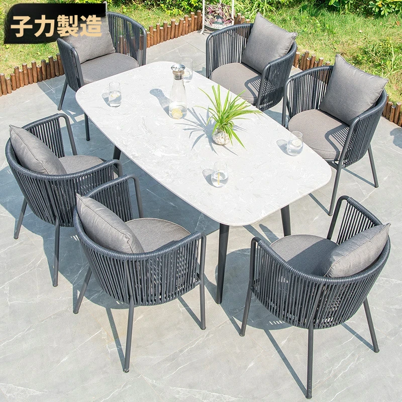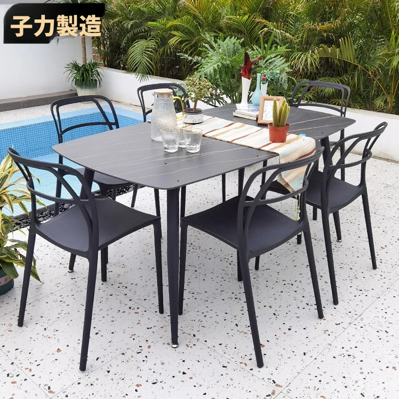 子力アウトドアテーブル&チェア - シンプルでスタイリッシュな岩板製、庭やバルコニーに最適!リラックスできる空間を提供し、屋外の食事を楽しむための完璧なアイテムです。