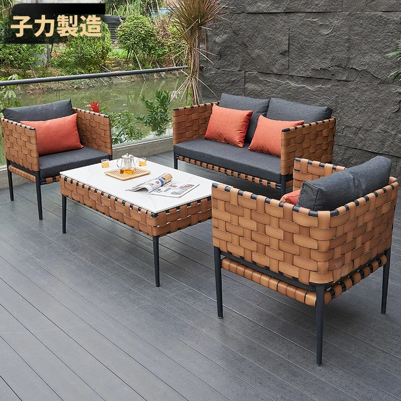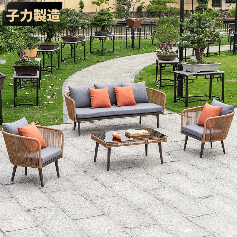 子力アウトドアラタンソファセット - リラックスできるバルコニー用、UVカット・防水仕様の三人掛けソファ。おしゃれで快適な外部空間を演出します!